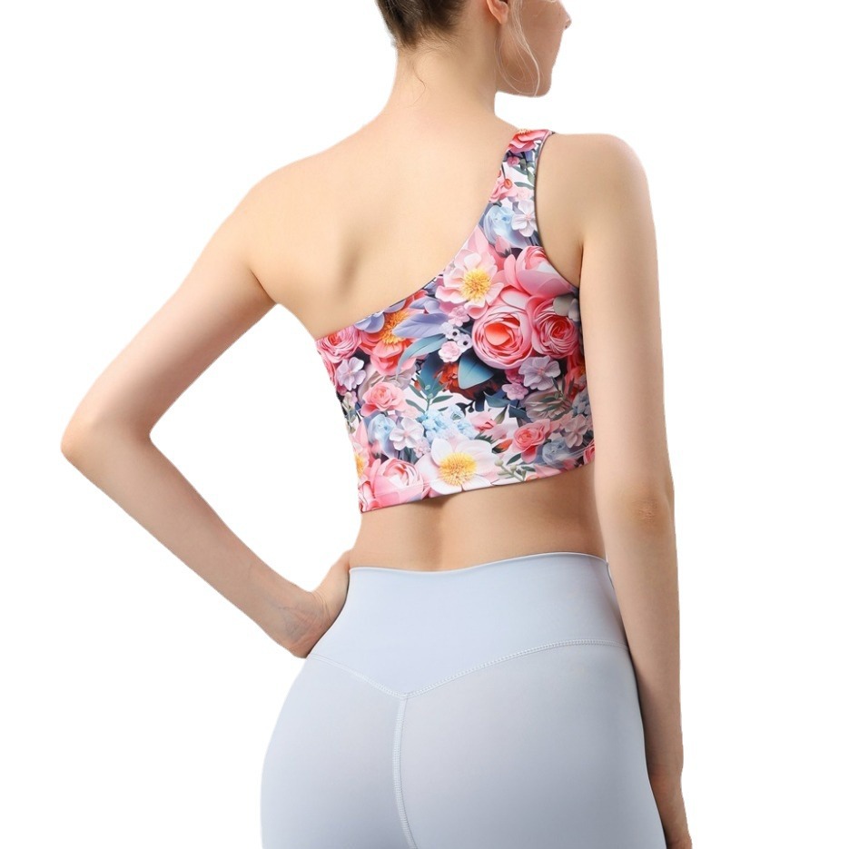 欧美外贸跨境新款美背心单肩印花瑜伽套装运动文胸聚拢内衣健身裤