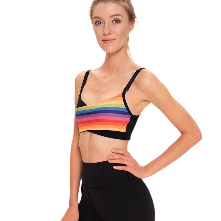 跨境外贸欧美彩虹撞色性感聚拢内衣运动文胸背心瑜伽服套装健身裤