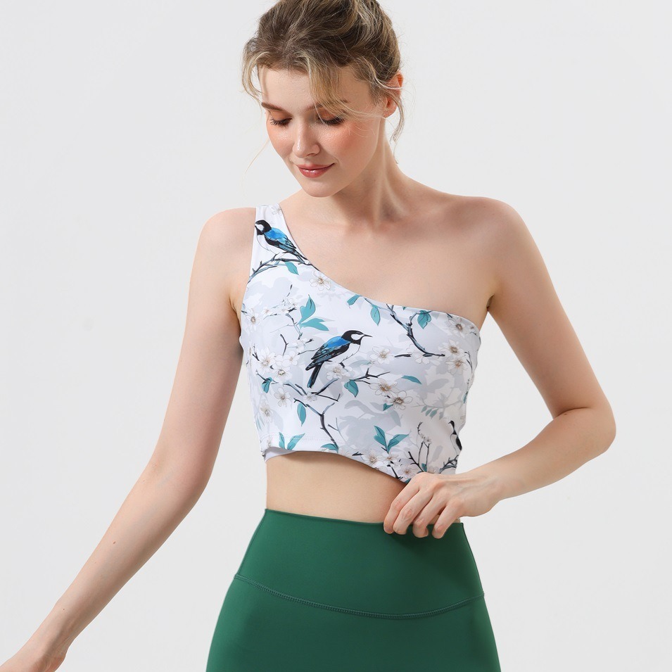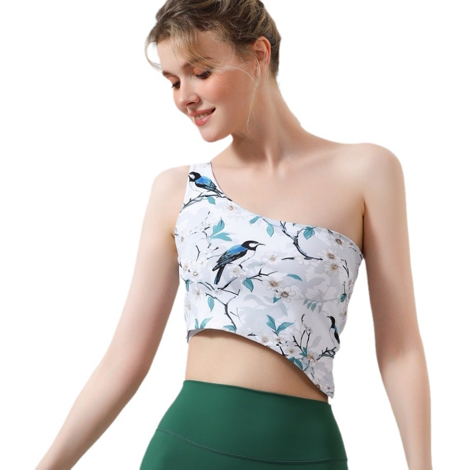 新款斜肩女神新款瑜伽服运动美背心健身女孩性感文胸背心复古印花
