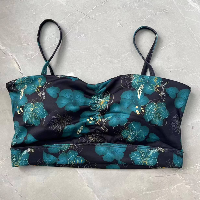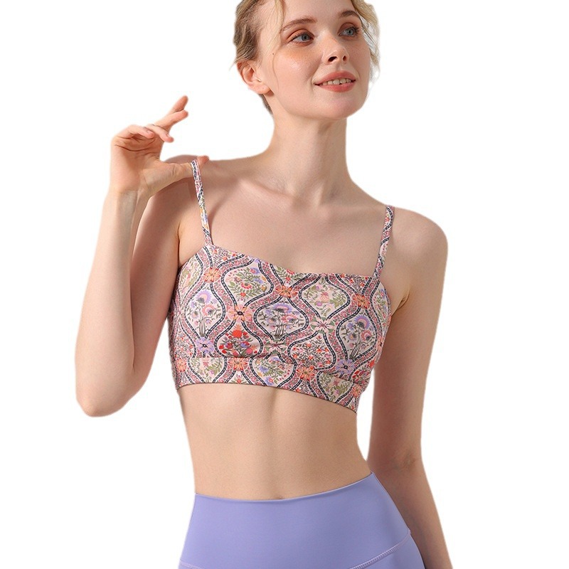 复古印花吊带运动文胸女带胸垫健身内衣瑜伽服背心套装聚拢抹胸罩