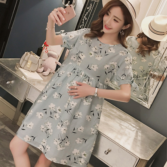 春夏季短袖孕妇家居服哺乳月子服连衣裙喂奶睡裙睡衣可外穿拍照服