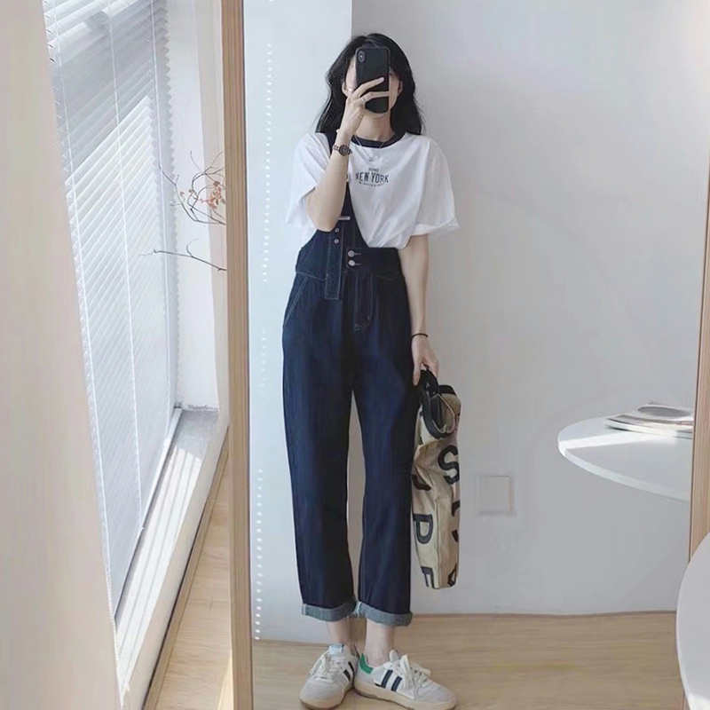 夏季新款高级感炸街洋气减龄时尚牛仔工装背带裤两件套装女