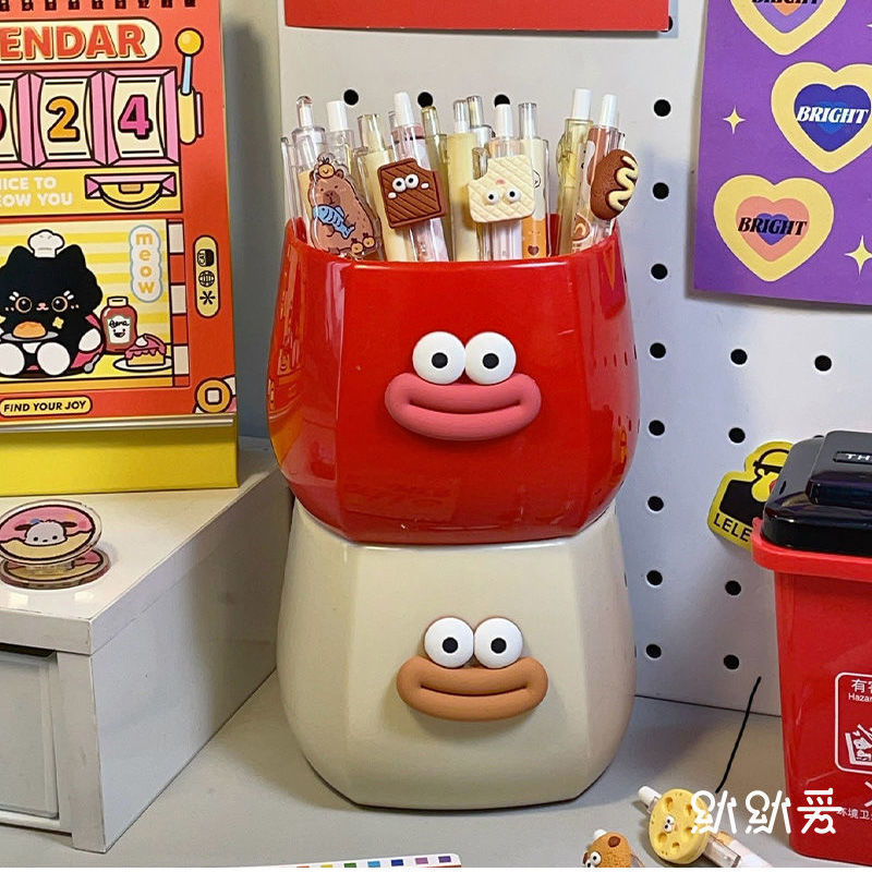 ins风高颜值化妆收纳盒学生办公室桌面笔筒儿童趣味文具可爱笔筒