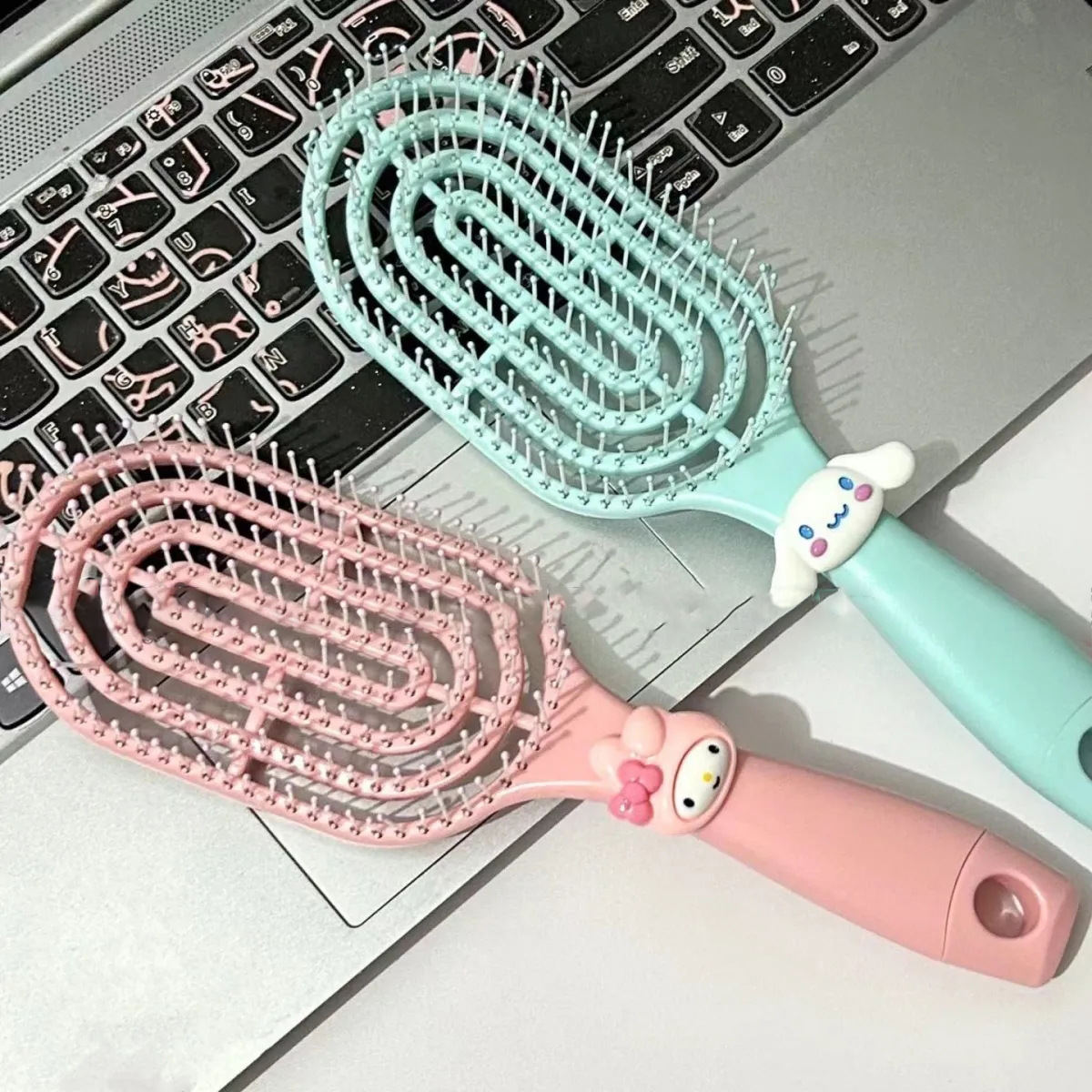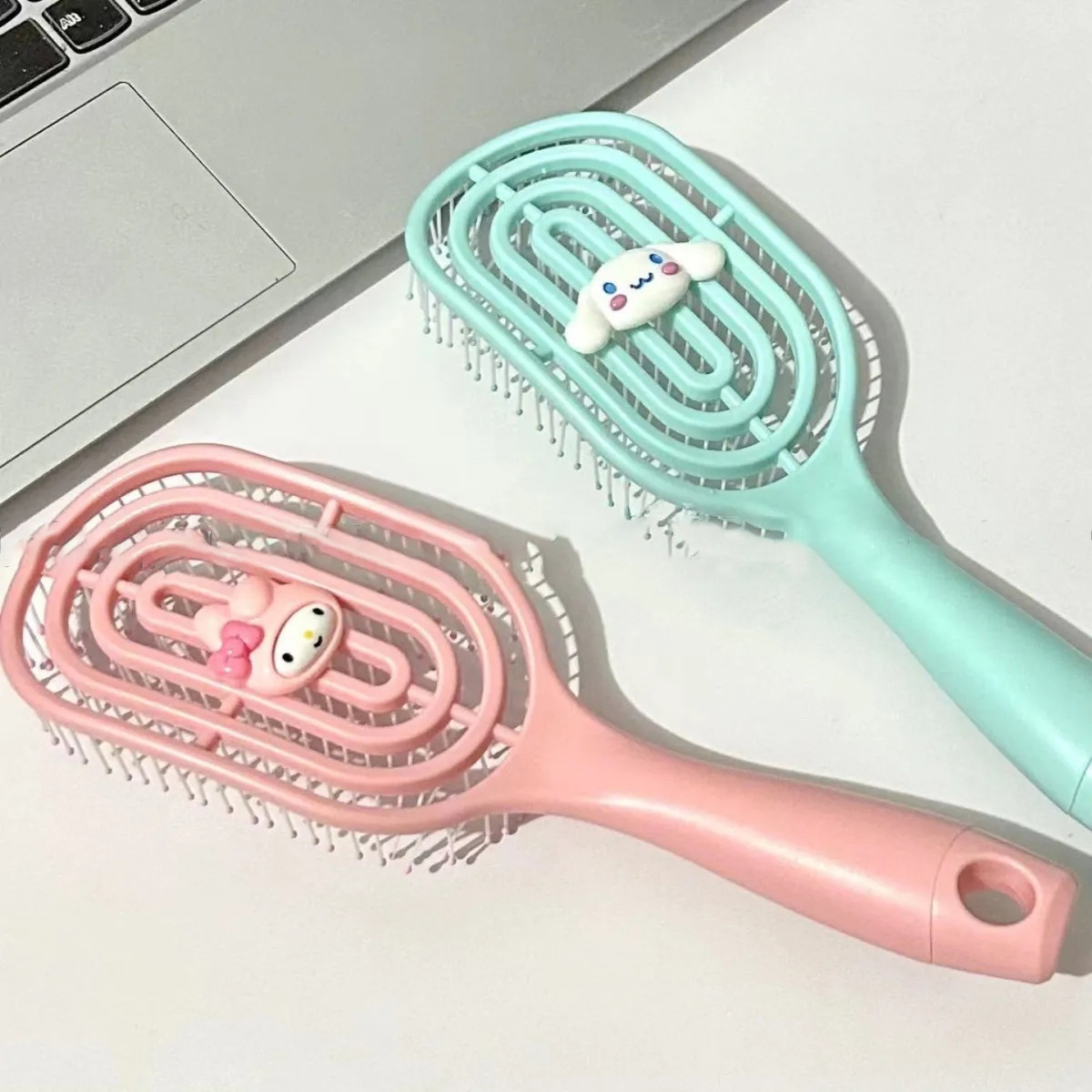 创意三丽鸥镂空按摩梳子女蓬松造型排骨梳长柄骨梳学生气囊梳子
