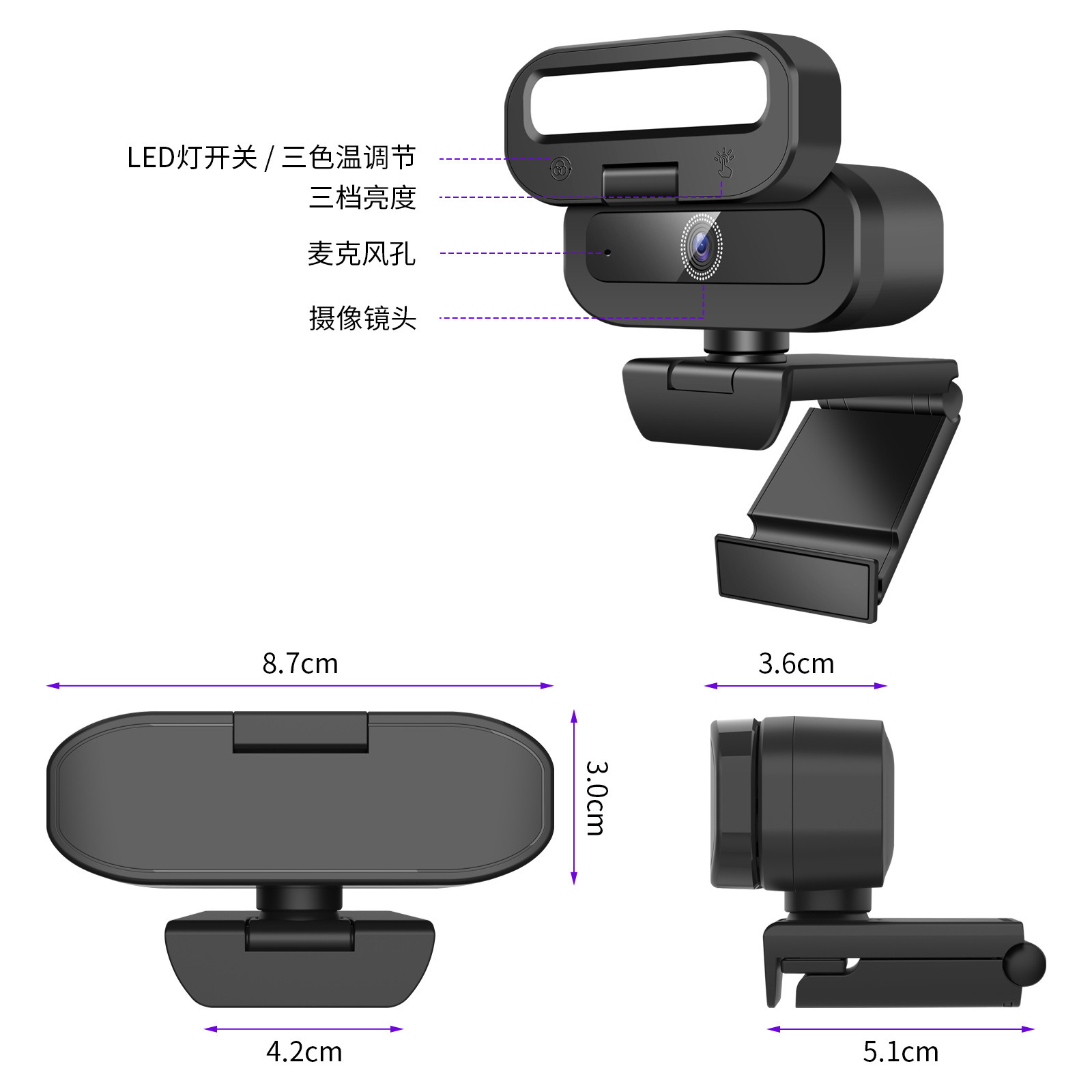 B18电脑摄像头4k补光灯摄像头USb摄像头直播摄像头会议摄像头