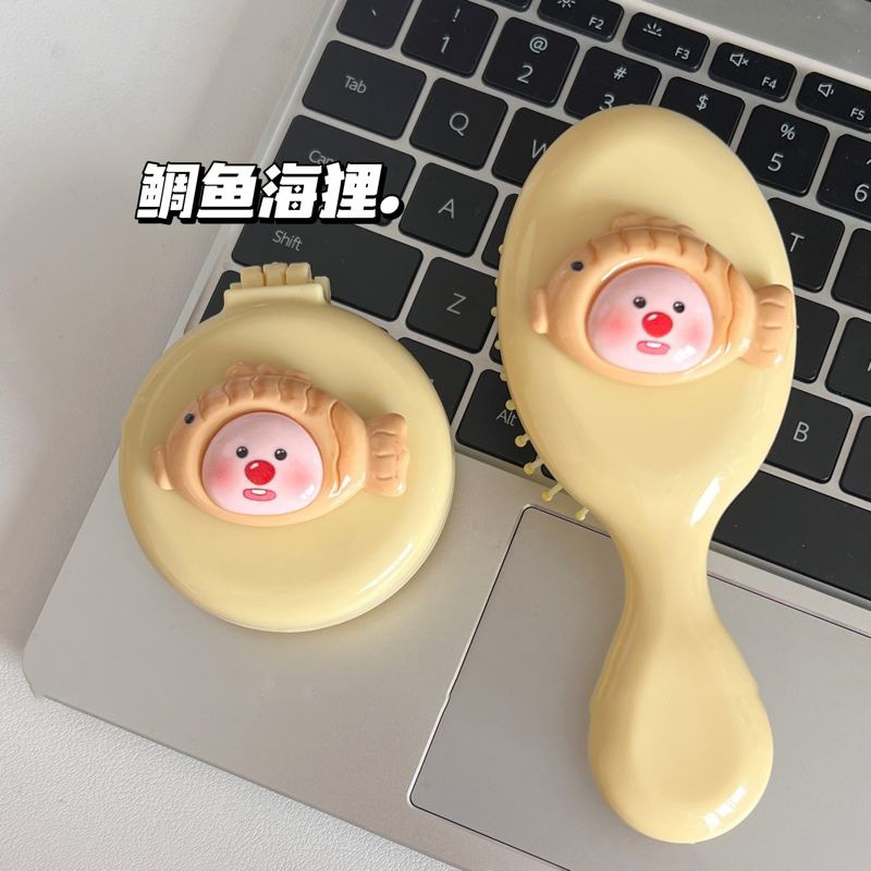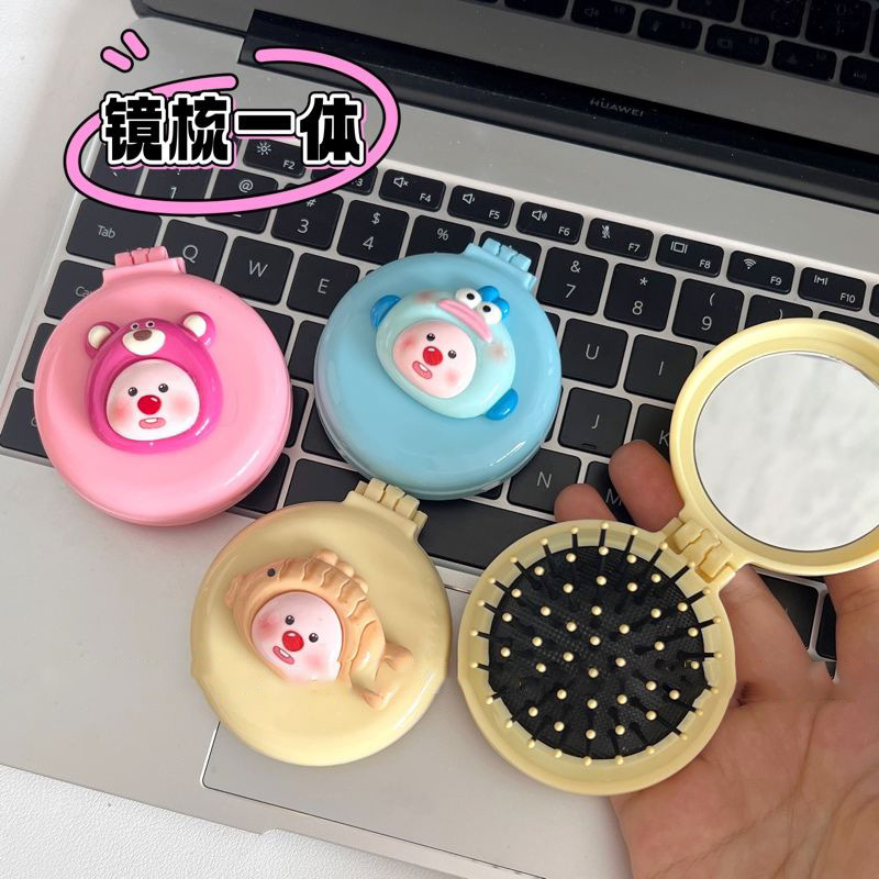 新款变装海狸气垫梳二合一镜梳折叠梳学生可爱手持造型梳气囊梳
