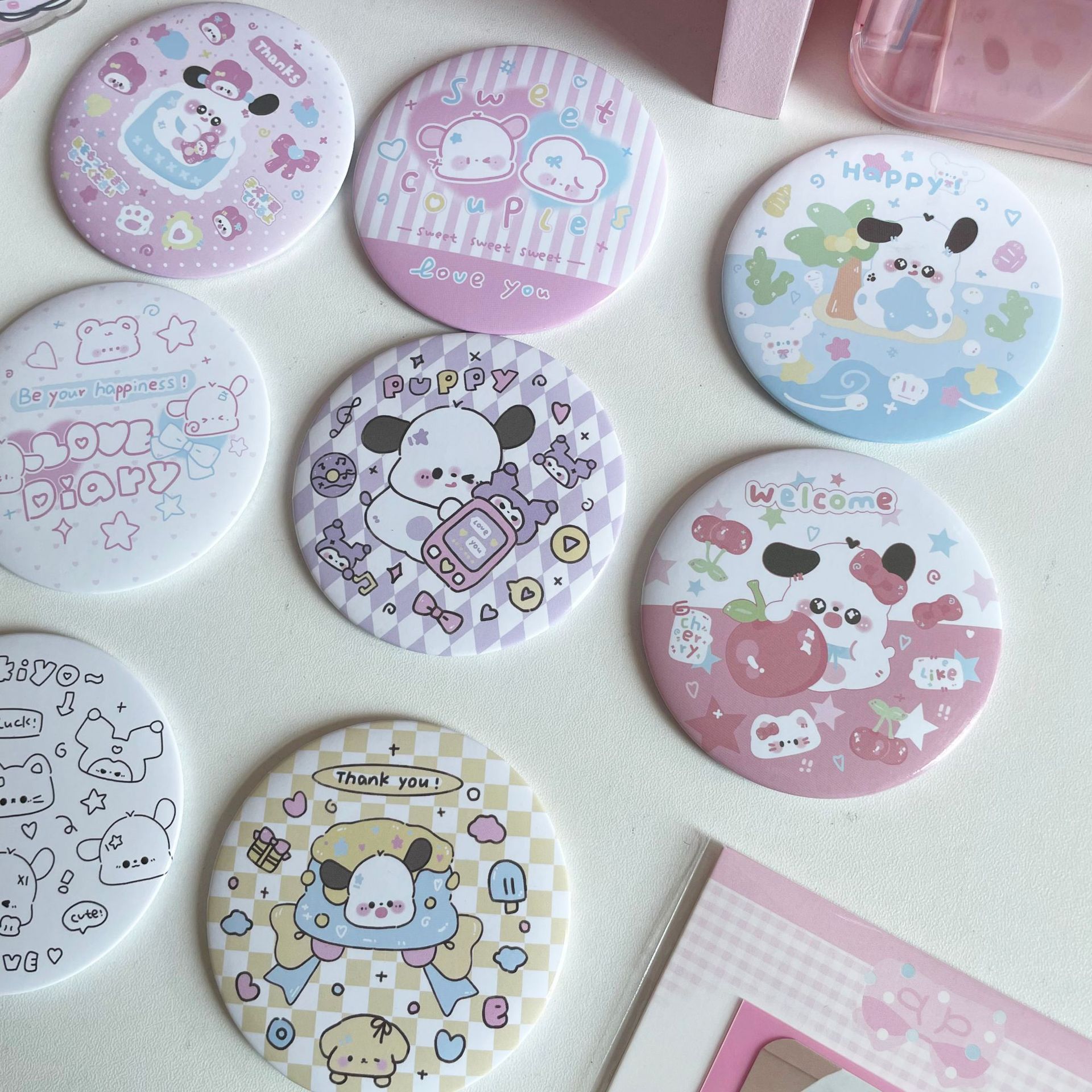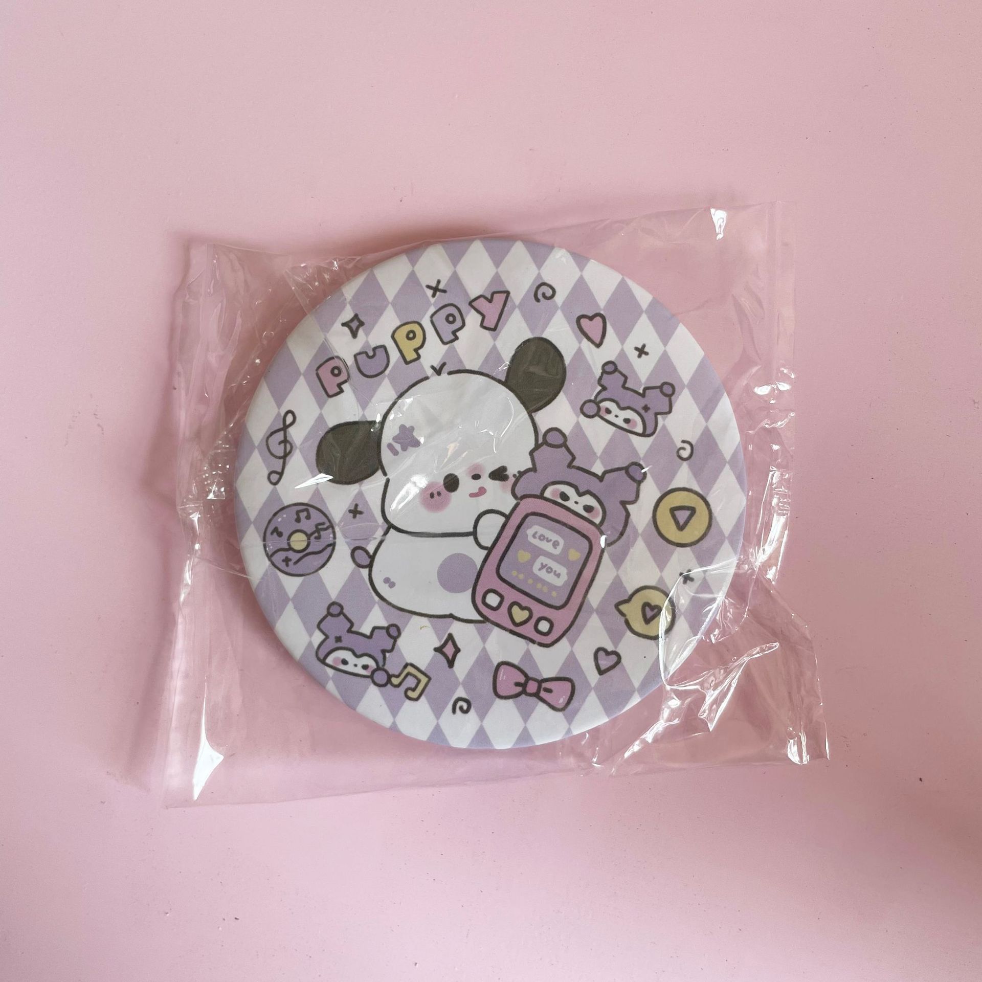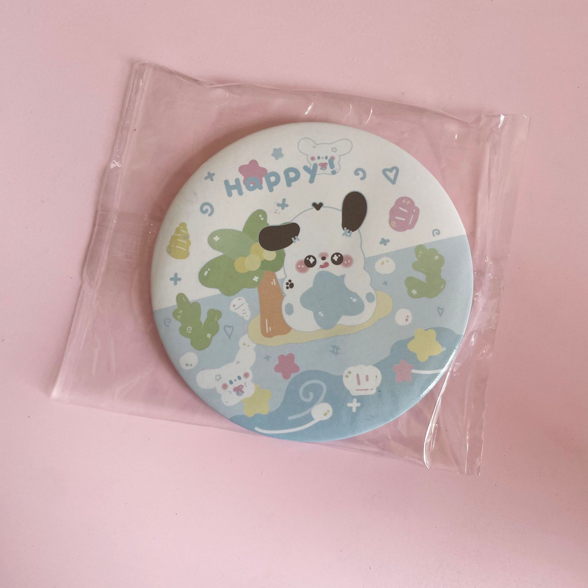 少女心原创ins卡通小狗迷你小圆镜便携随身镜学生化妆补妆小镜子