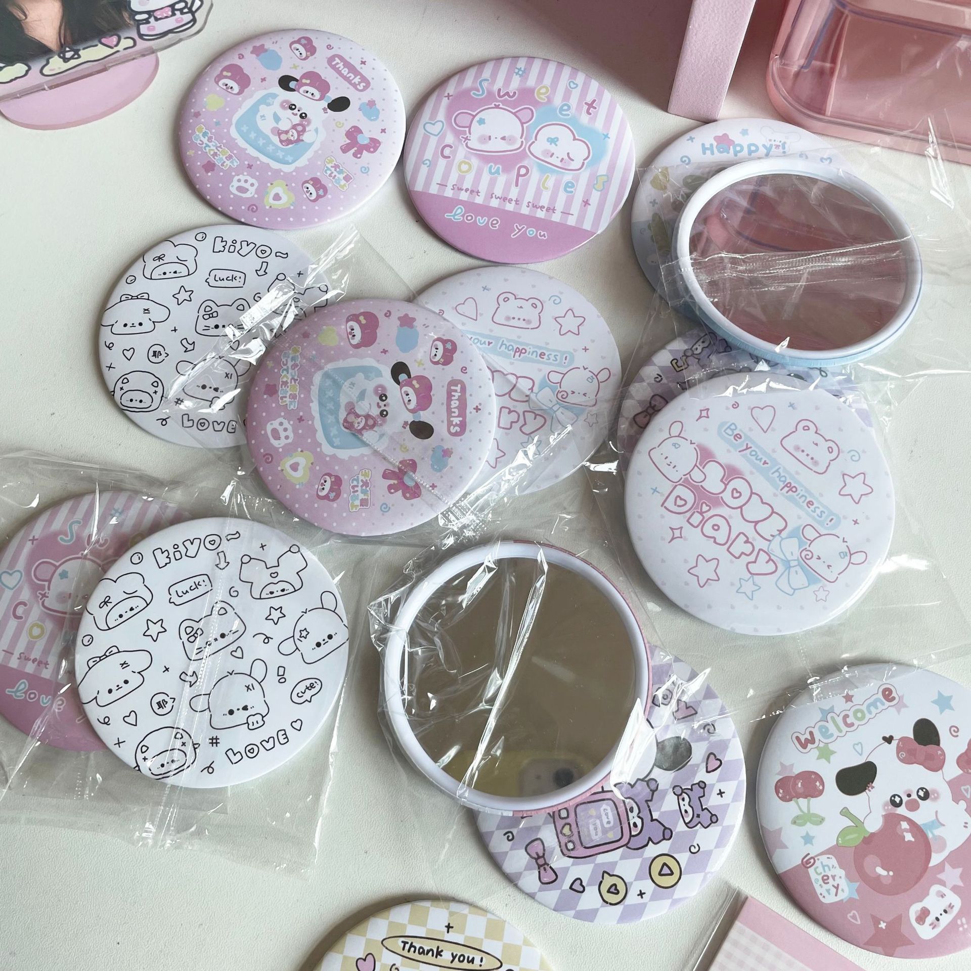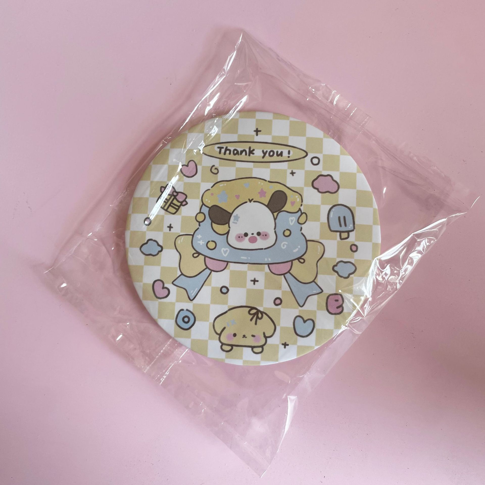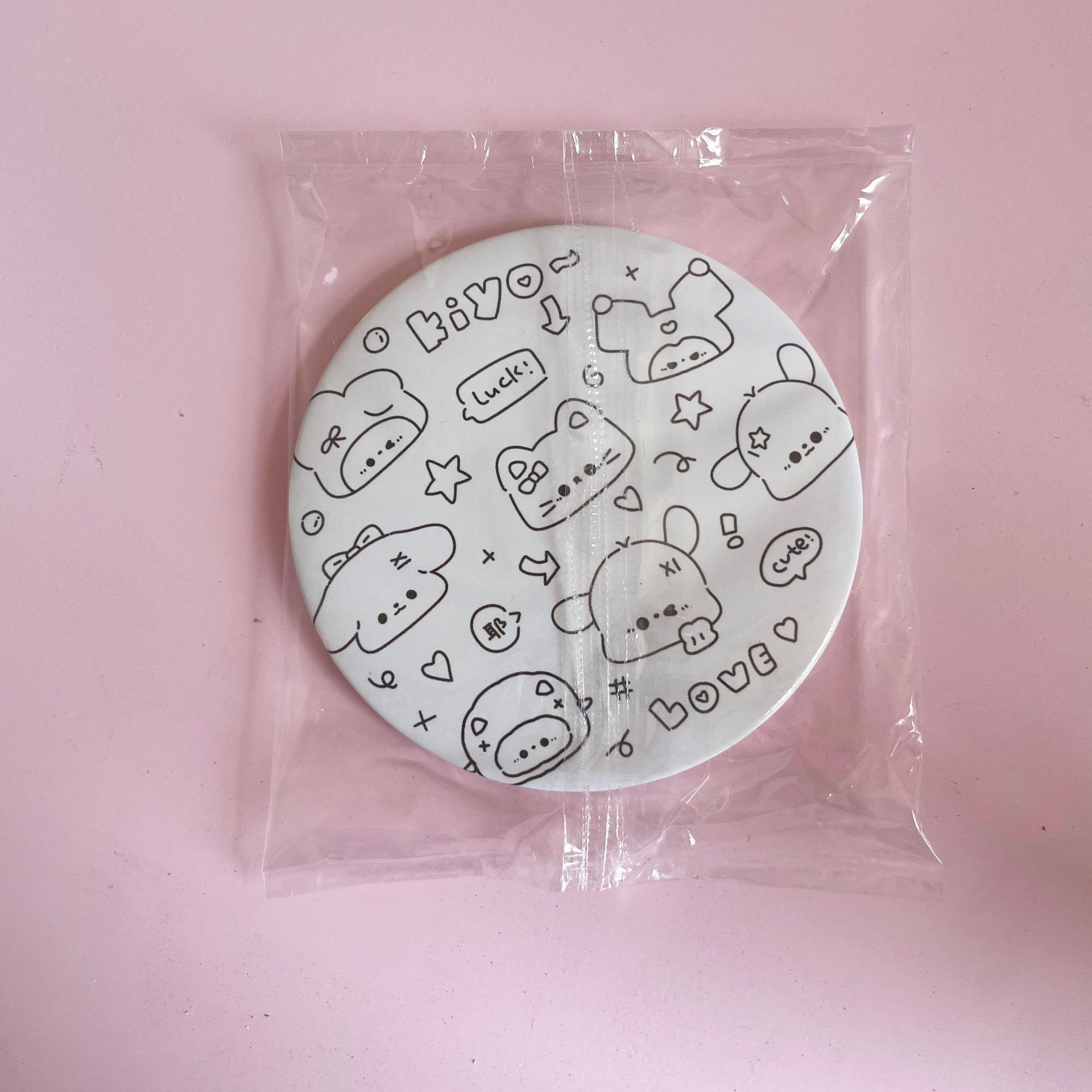 少女心原创ins卡通小狗迷你小圆镜便携随身镜学生化妆补妆小镜子