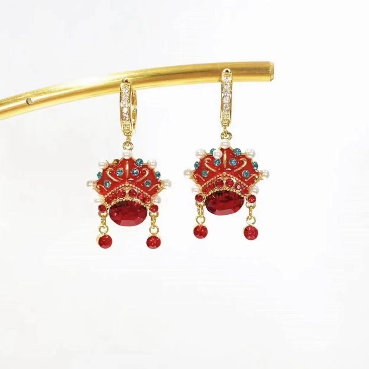 国风耳饰汉元素红色耳饰戏曲耳环花旦脸谱国潮中国风小众ins古风