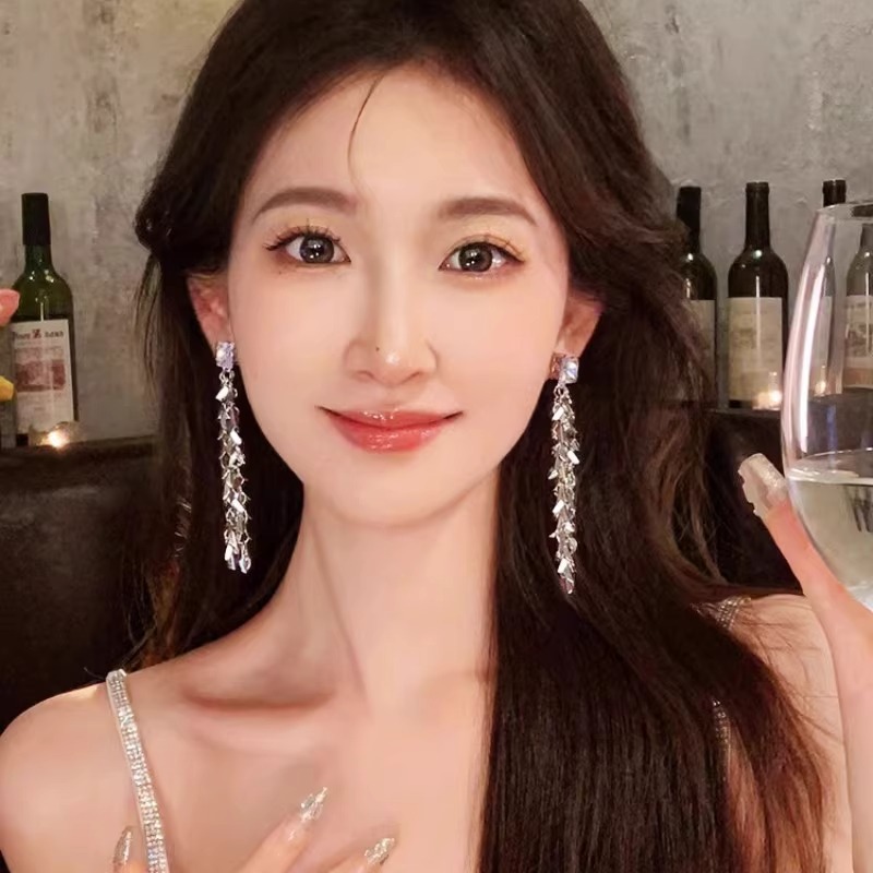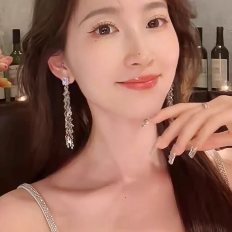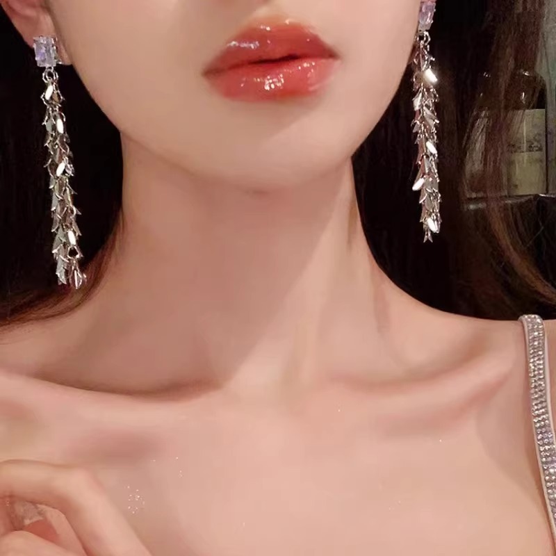 轻奢精致方钻流苏麦穗长款耳钉女时尚气质小众设计高级感洋气耳环