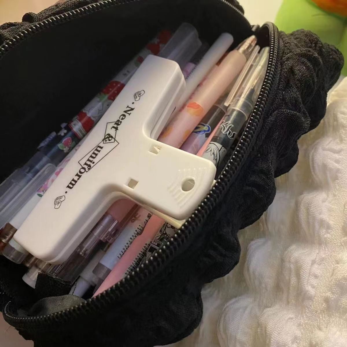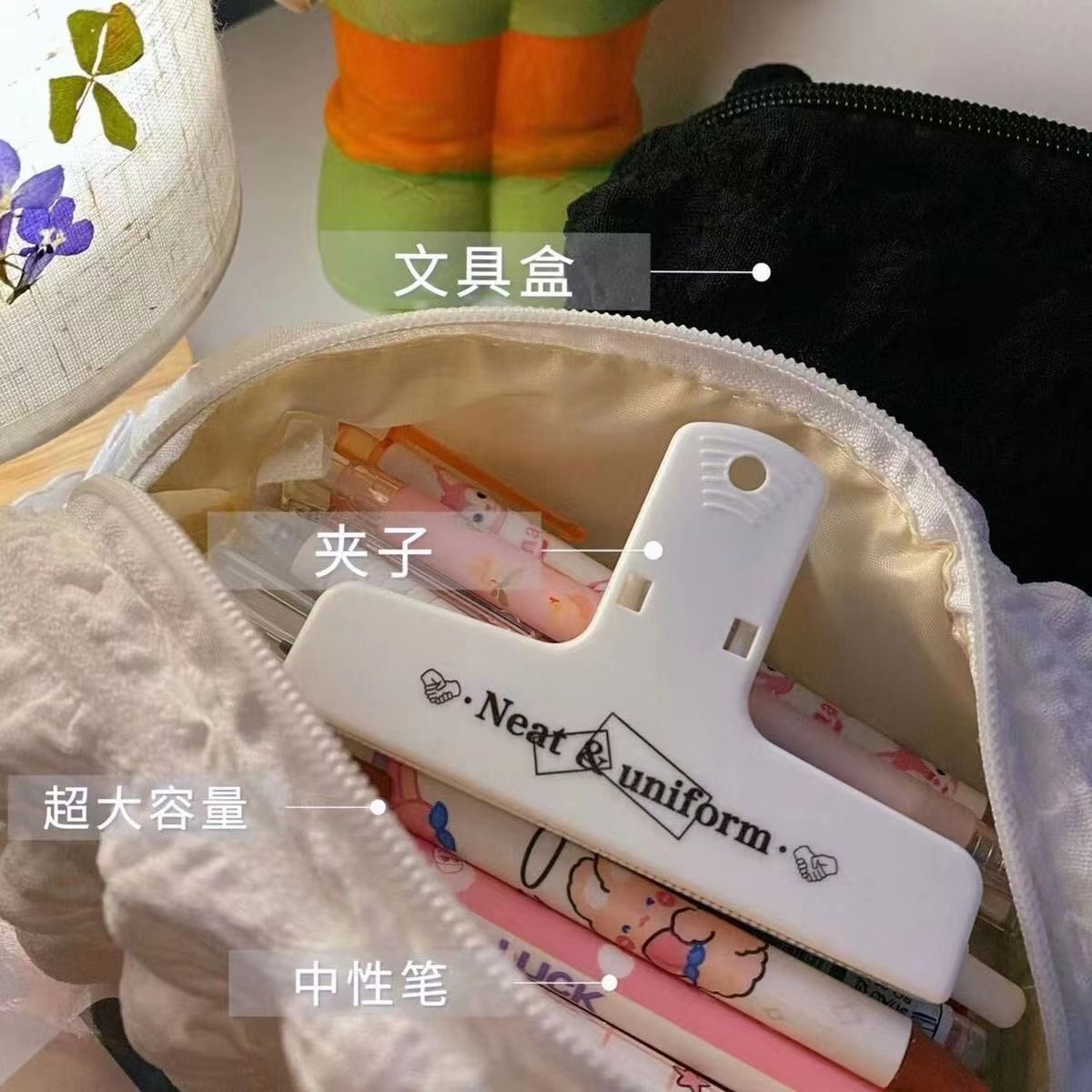 奶油泡芙笔袋ins小众不撞款简约大容量文具收纳袋初高中生笔袋韩
