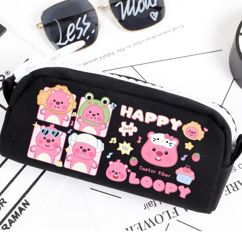 小海狸loopy大拉链笔袋ins可爱卡通高颜值学生文具袋大容量收纳袋