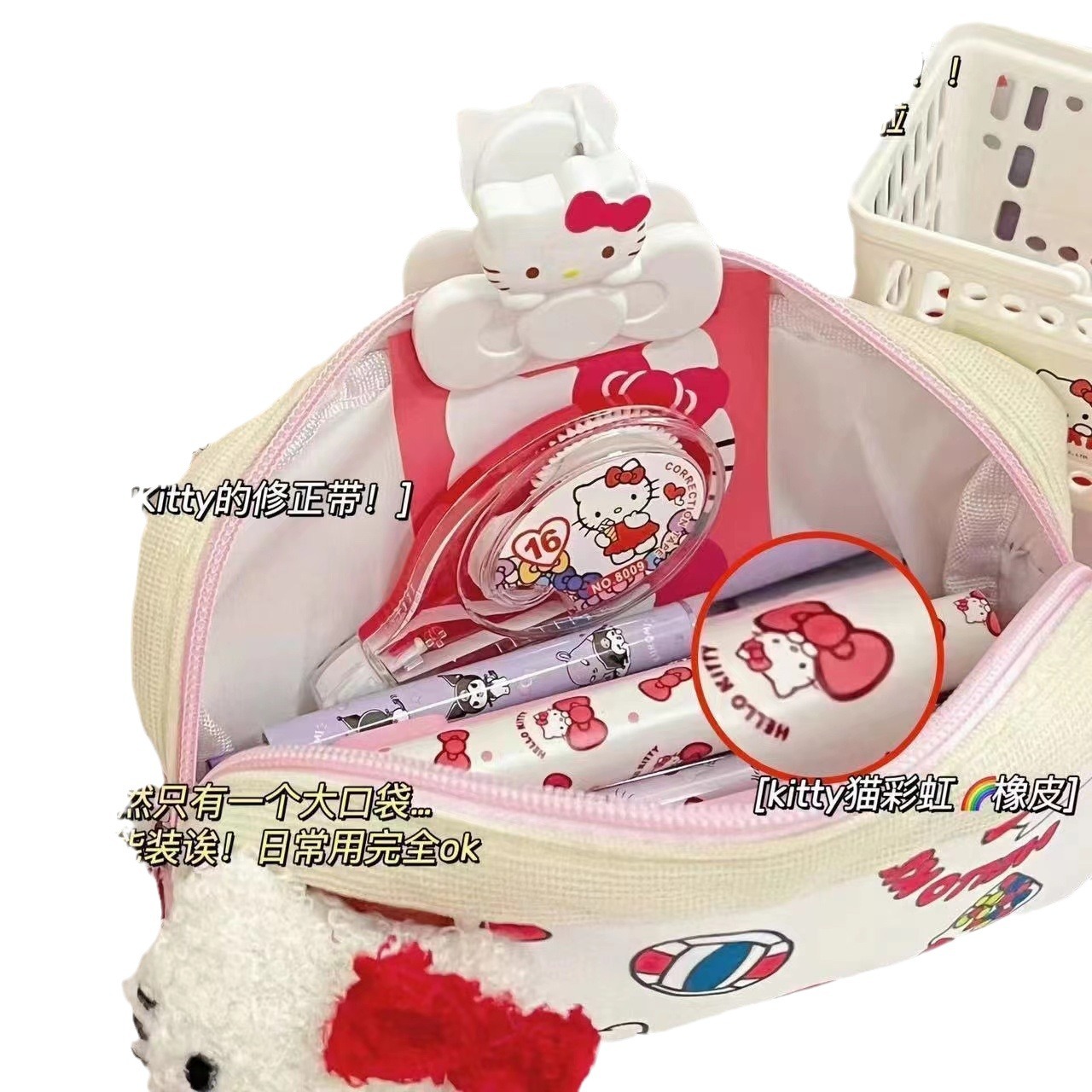 大容量卡通笔袋KT猫印花公仔装饰ins高颜值学生文具袋收纳袋