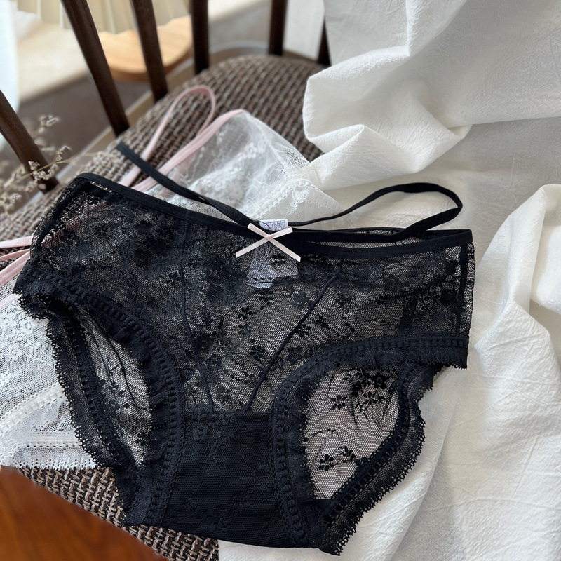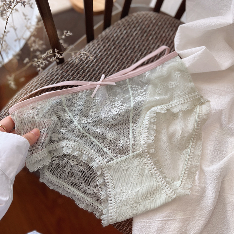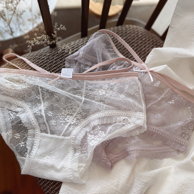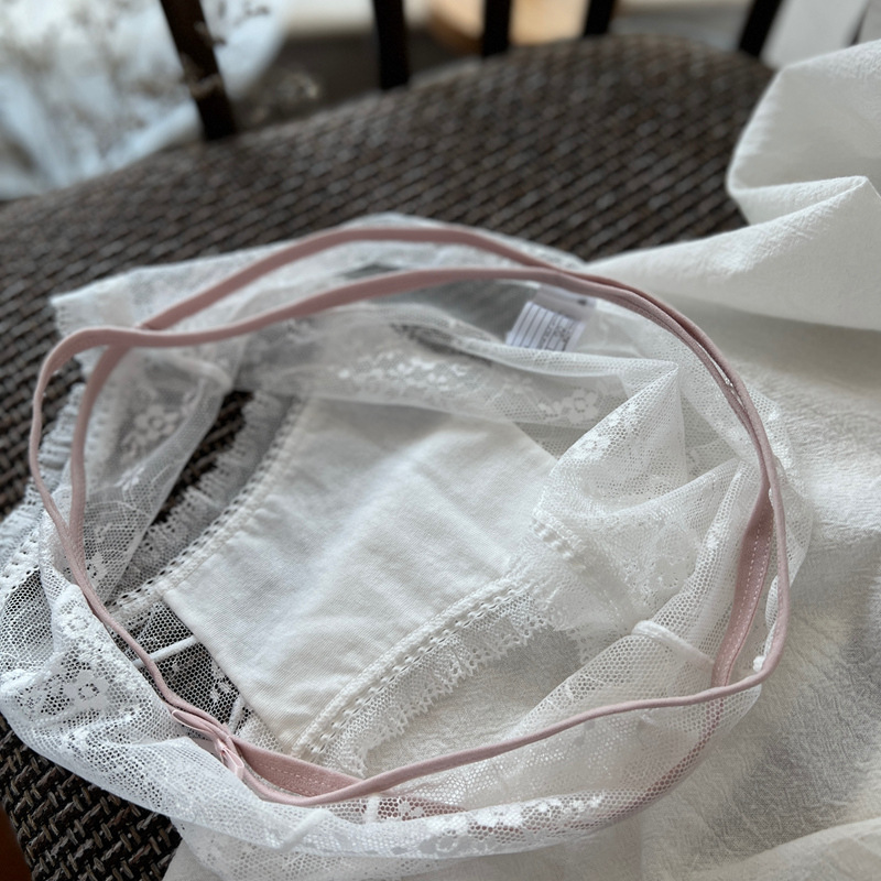 愿以温柔待花开~纯欲性感少女 透气蕾丝网纱软糯微透视绑带设计内