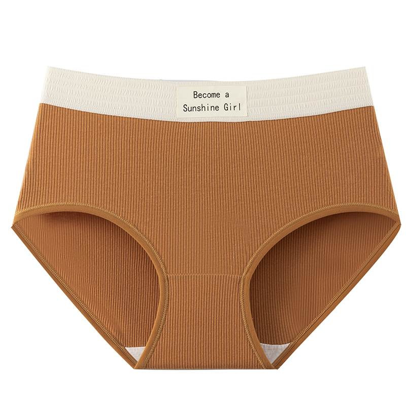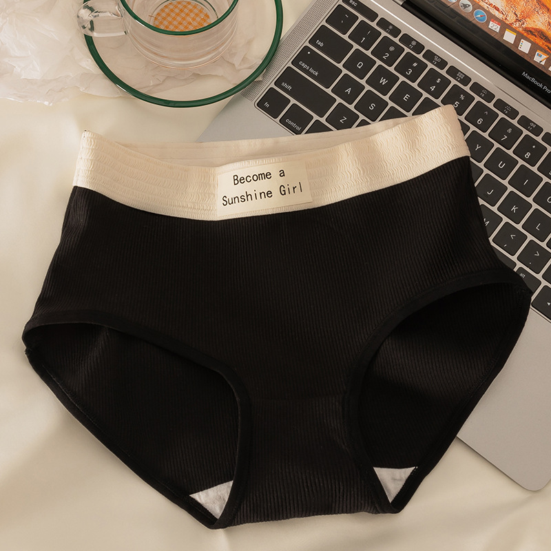 秋冬新款50支内裤女无痕罗纹复古撞色运动字母包臀三角裤