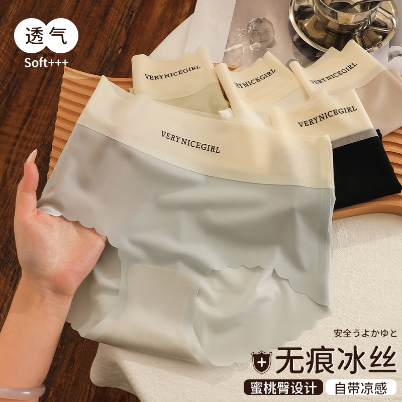 冰丝无痕少女内裤2024新款蜜桃臀薄款女士内裤棉质抗菌棉质质裆