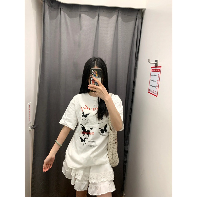 美式复古蝴蝶印花短袖T恤女情侣新款夏小众百搭时尚穿搭上衣