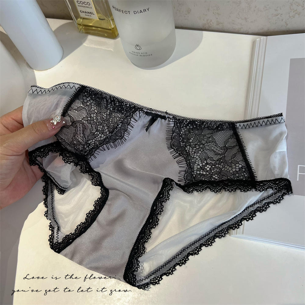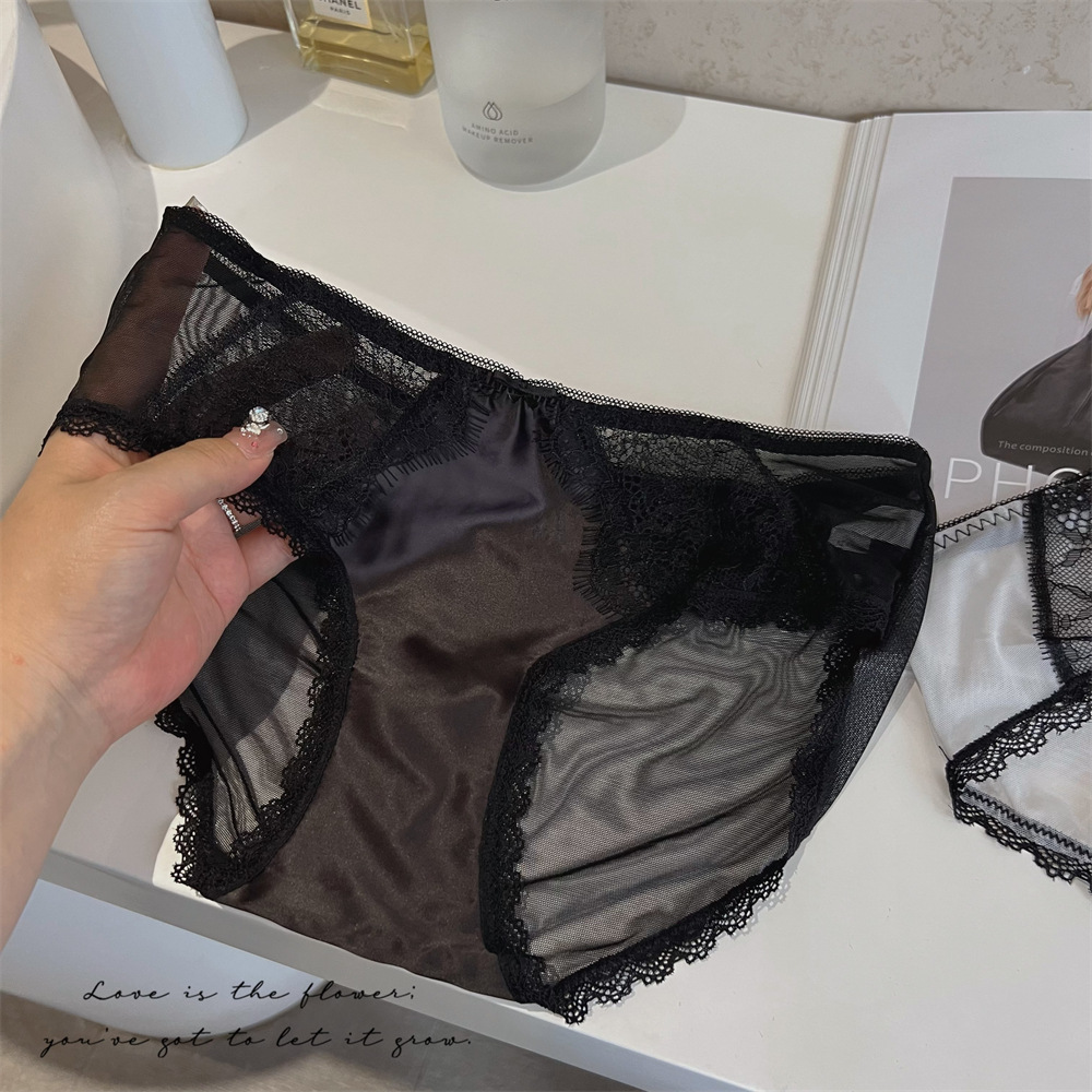 复古高奢蕾丝内裤女法式睫毛拼接缎面舒适透气裆中腰三角裤女