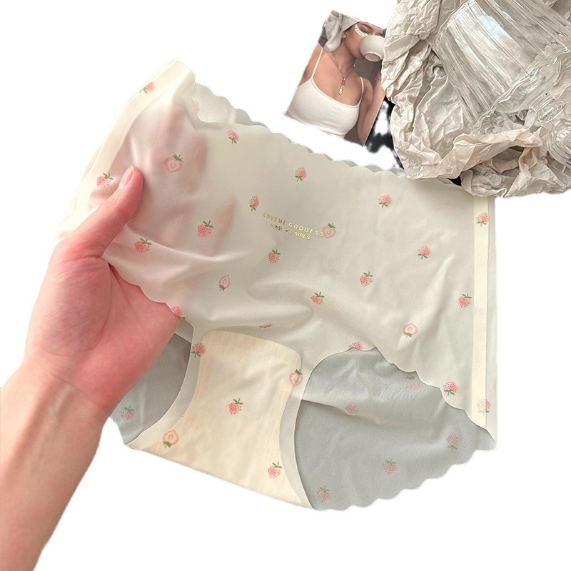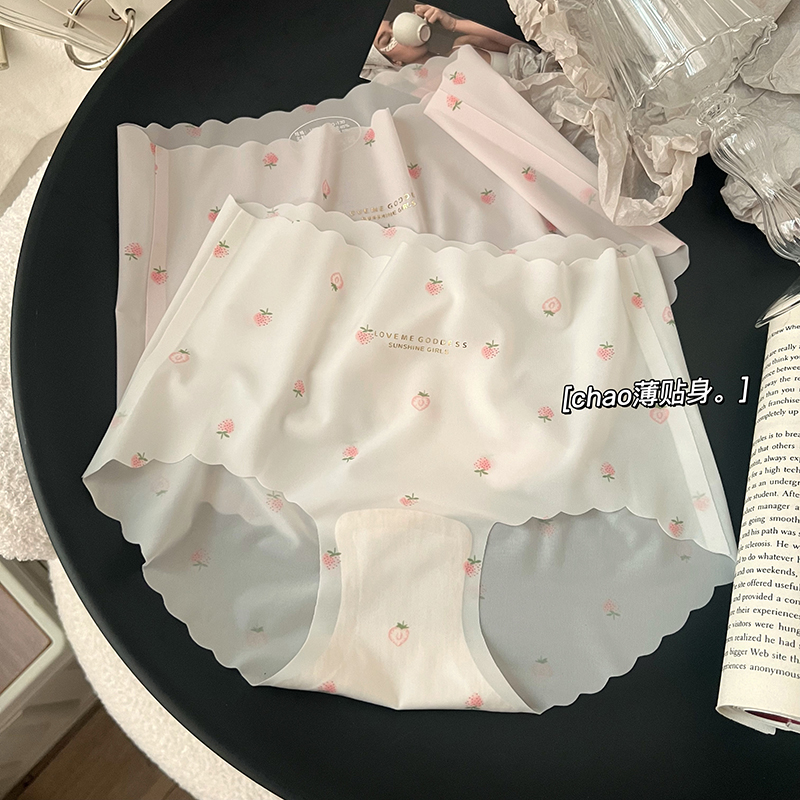 内裤女无痕草莓冰丝少女薄款速干学生裆中腰女生抗菌女士短裤