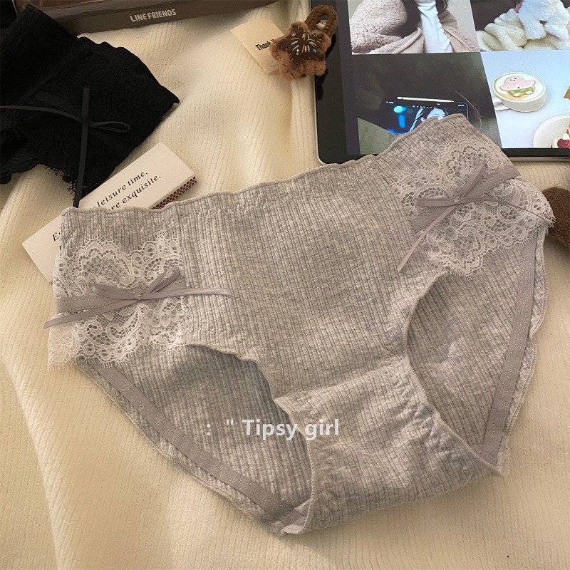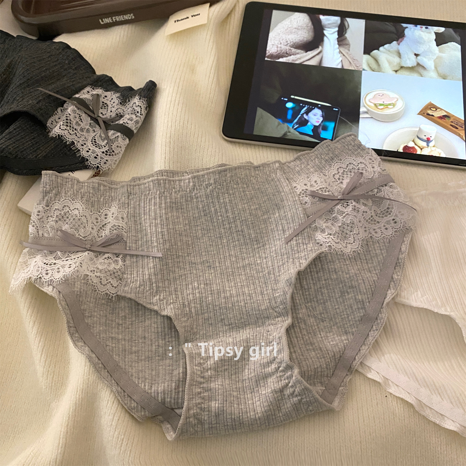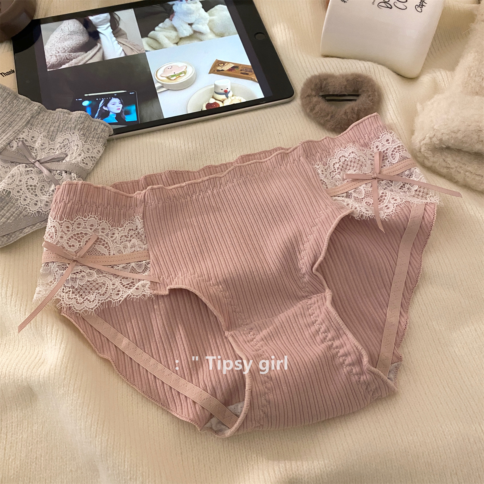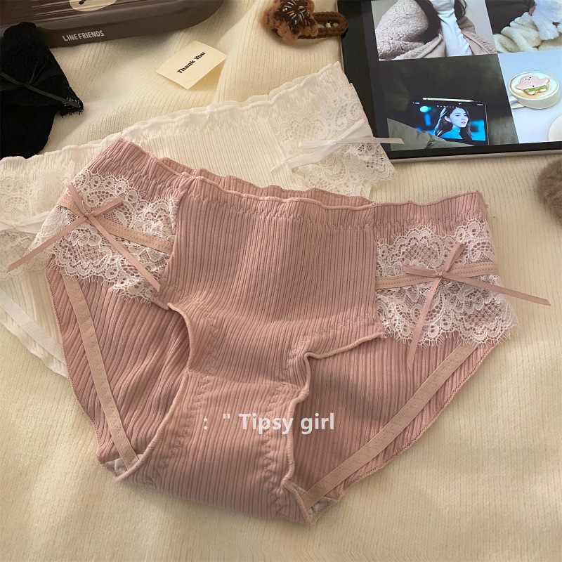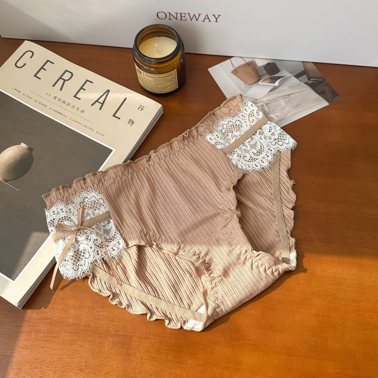 Japanese style atmosphere "Lace patchwork girl underwear girl underwear mid waist spring and autumn