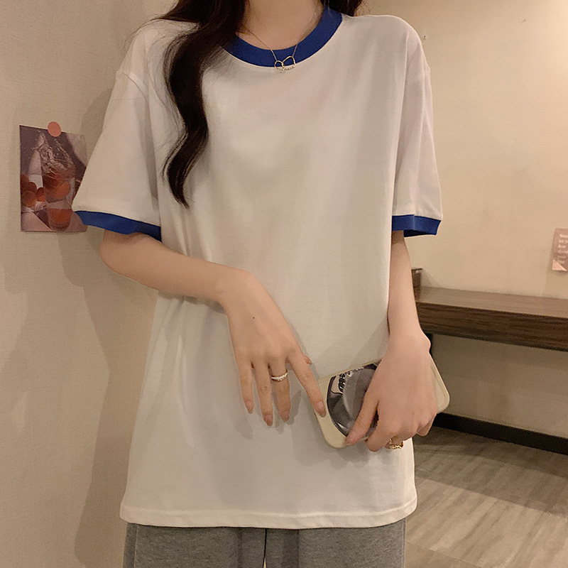 200克纯棉光板宽松拼色上衣夏季新款小众设计感拼接撞色短袖T恤潮