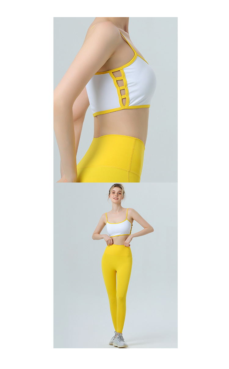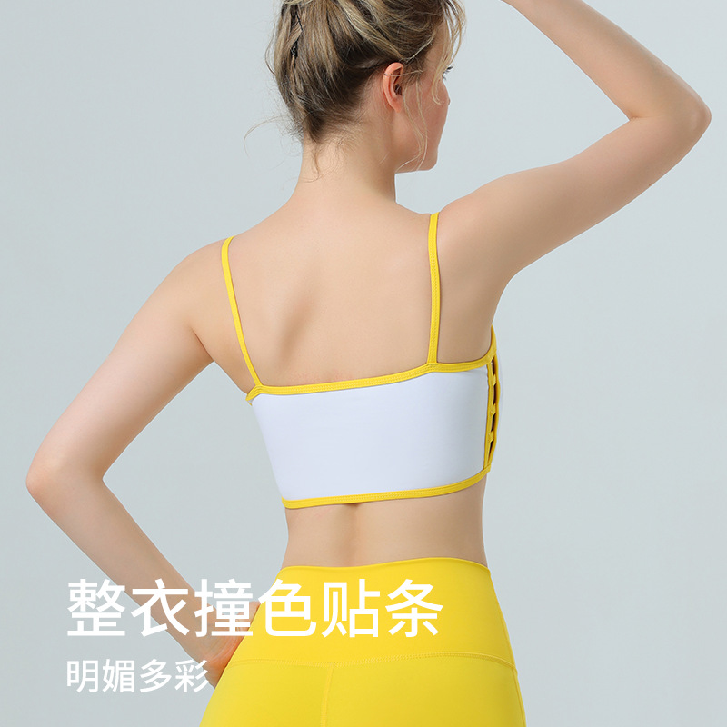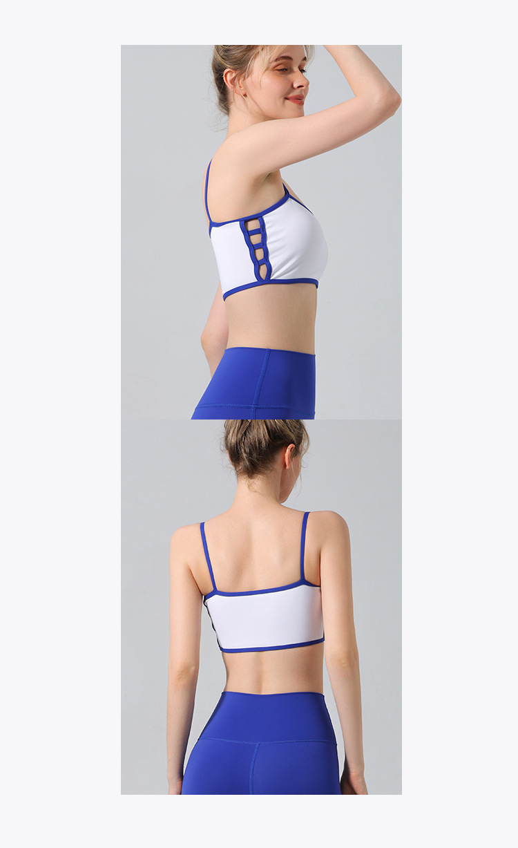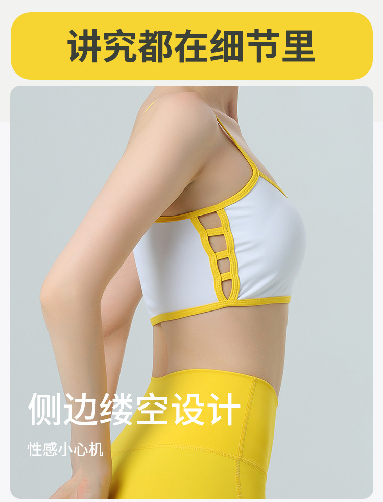 欧美跨境侧镂空撞色边裸感内衣运动健身文胸聚拢带胸垫瑜伽服套装