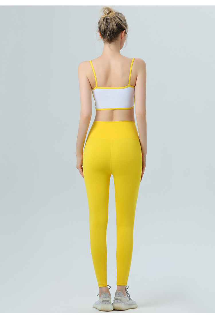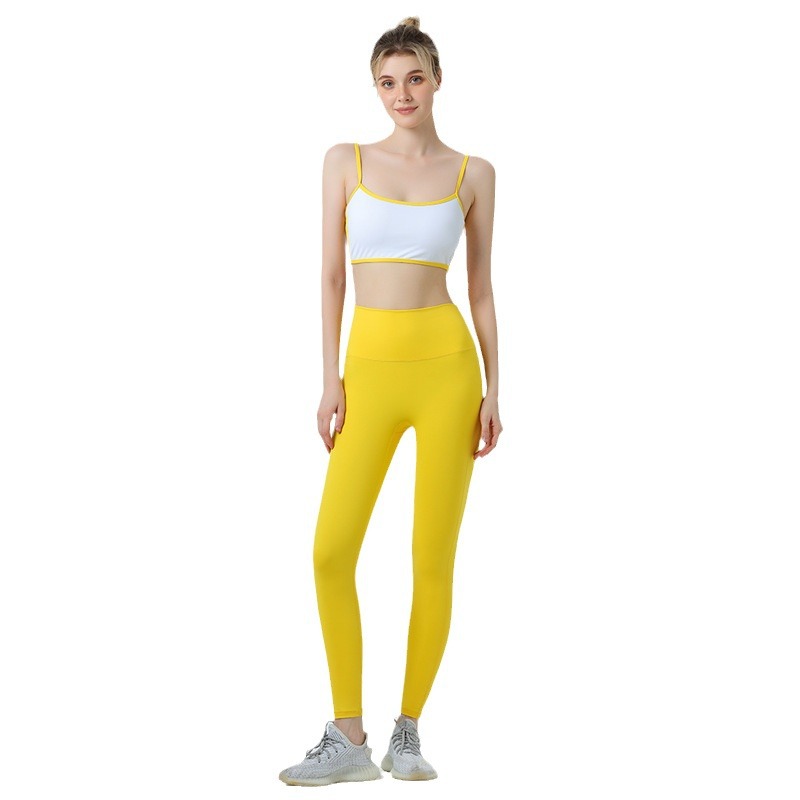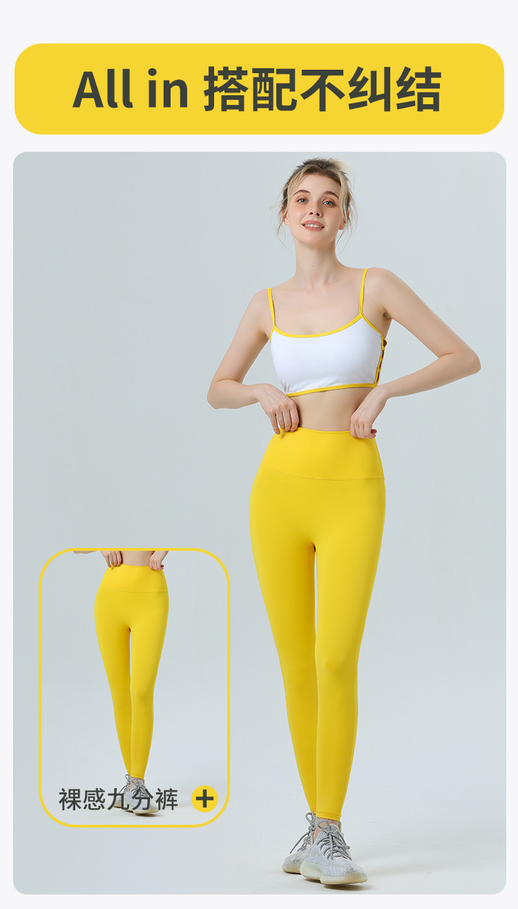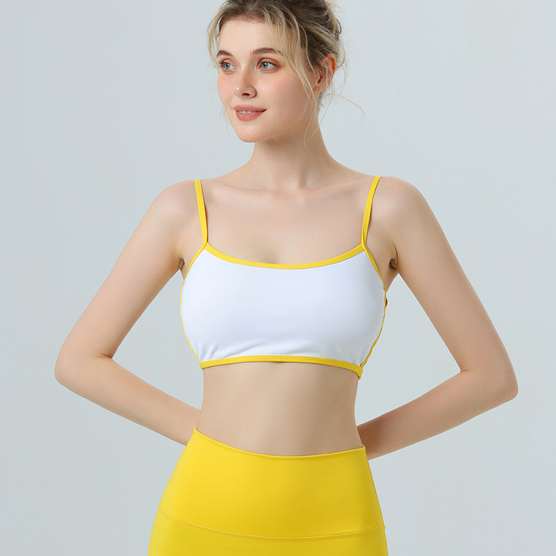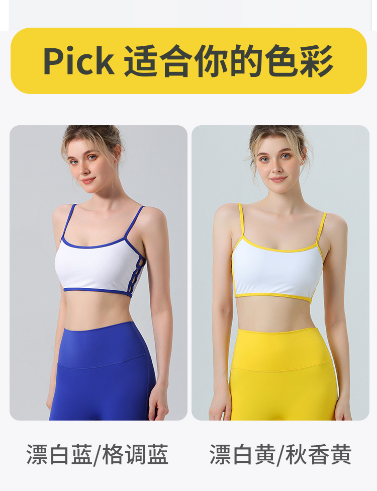 欧美跨境侧镂空撞色边裸感内衣运动健身文胸聚拢带胸垫瑜伽服套装