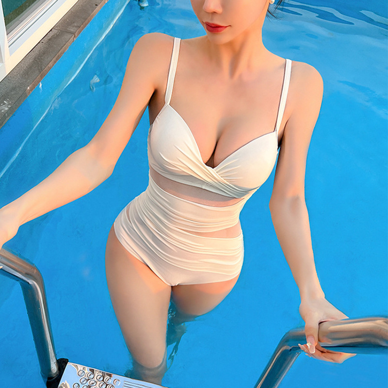 纯色吊带聚拢紧身显瘦性感露背欧美三角温泉度假连体泳衣