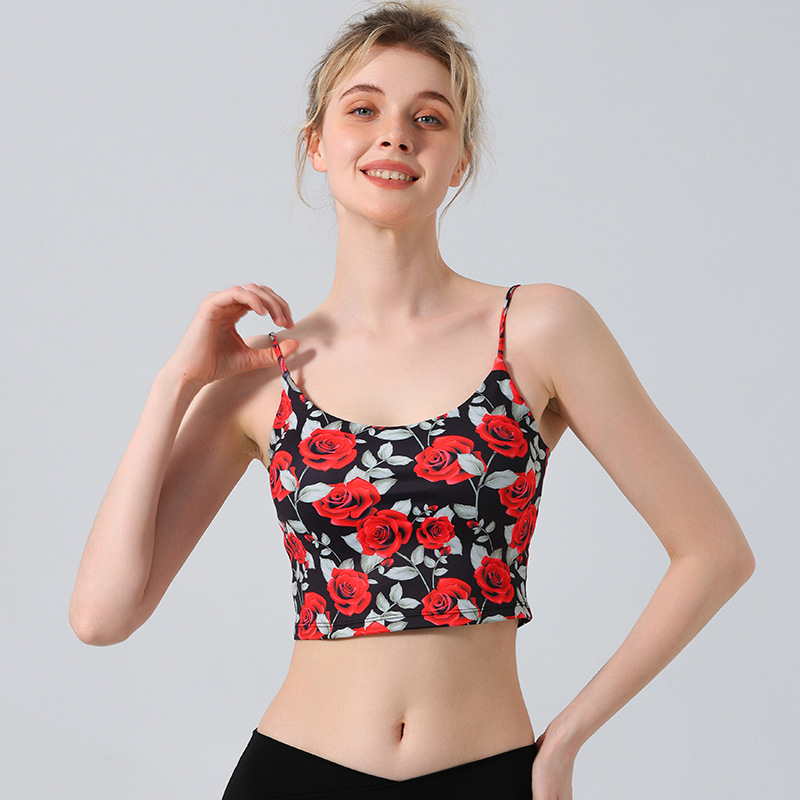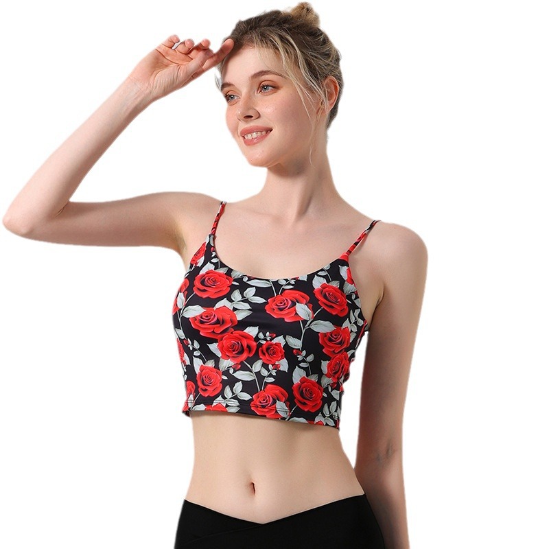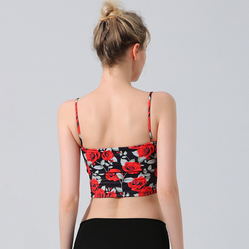 印花细肩吊带运动内衣性感美背防震速干高弹健身舞蹈瑜伽服含胸垫