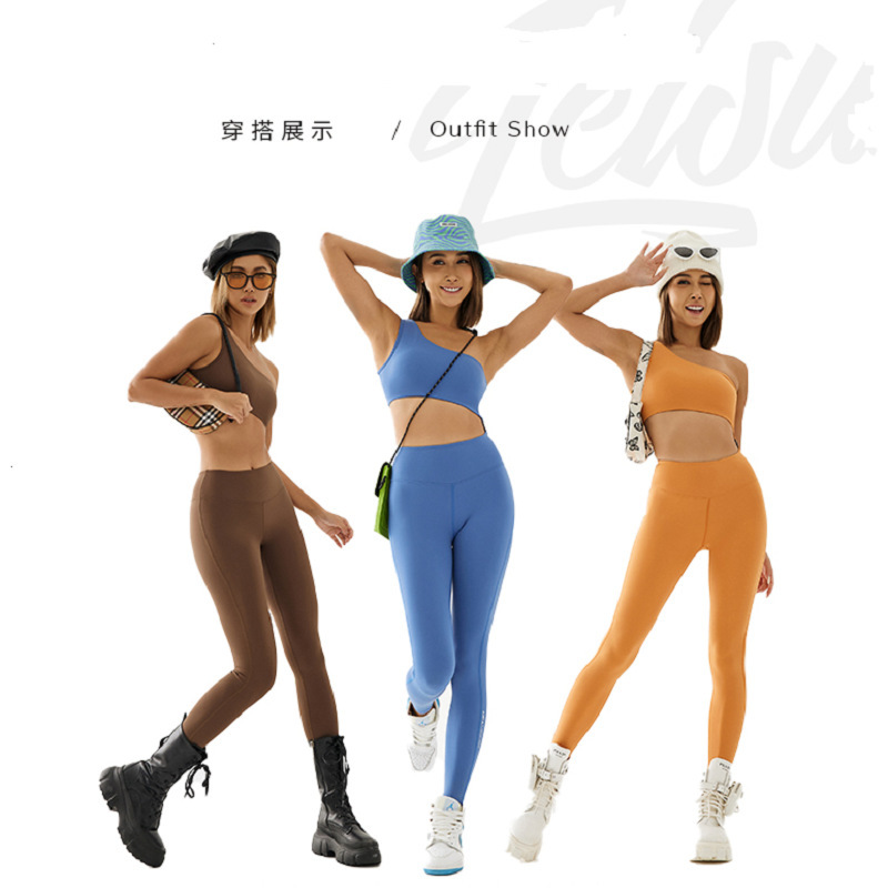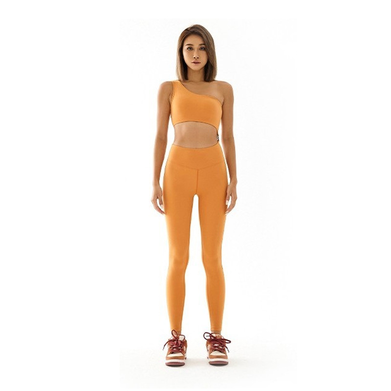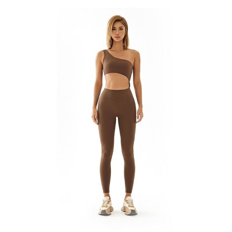 欧美跨境时尚个性感单肩可拆卸连体衣瑜伽服套装女高腰运动健身裤