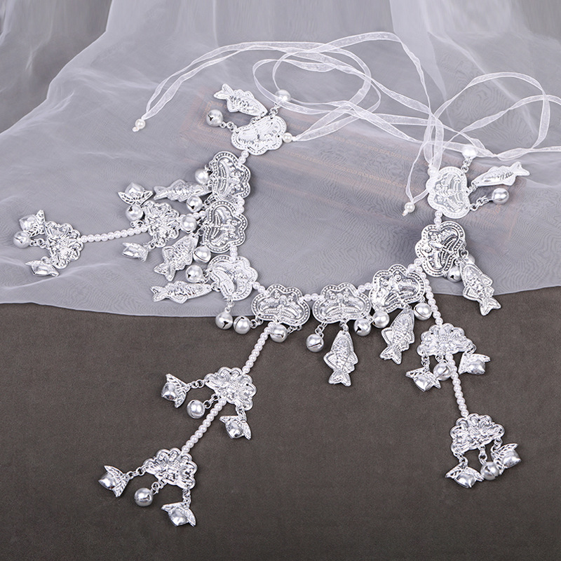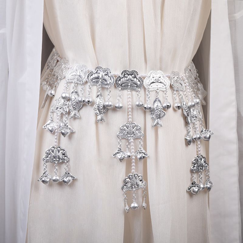 汉服腰链仿苗银腰饰 古风腰间配饰铃铛流苏腰佩唐风少女 月光鱼铃