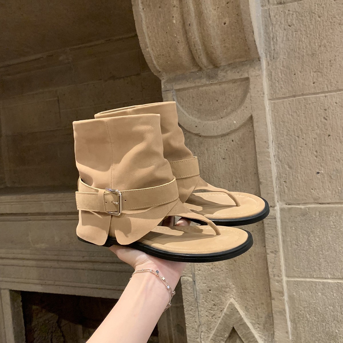 羊皮版~葡萄妈同款时髦辣妹圆头人字夹趾扣带外穿中筒夏季凉靴女