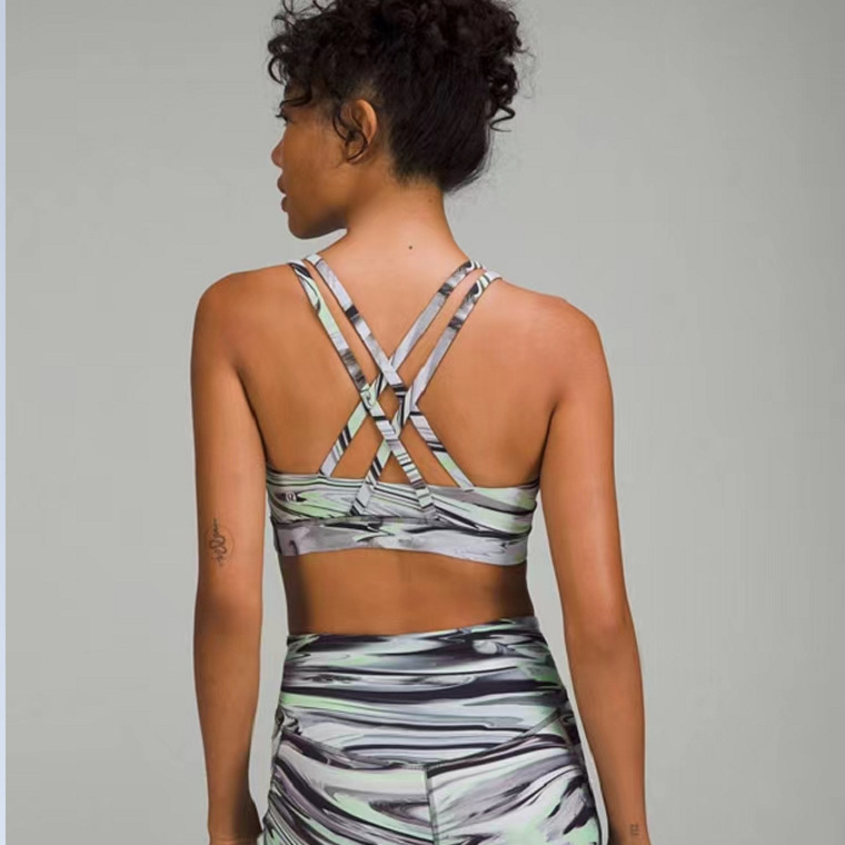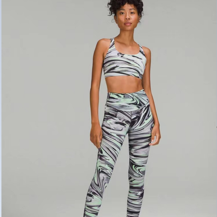 欧美跨境时尚印花瑜伽服套装女带胸垫运动文胸内衣健身裤防震