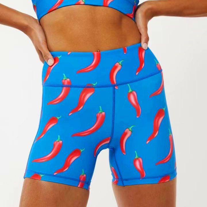 跨境欧美时尚印花水果无痕短裤高腰提臀运动健身跑步瑜伽三分裤女