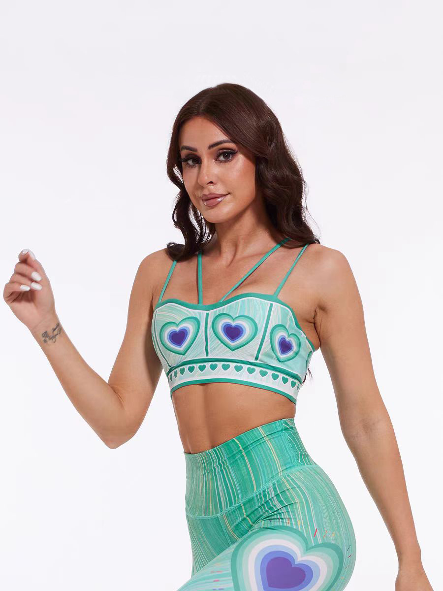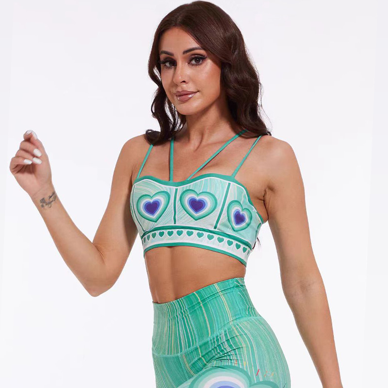 跨境欧美心桥之翼印花交叉吊带美背外穿健身瑜伽文胸运动内衣套装