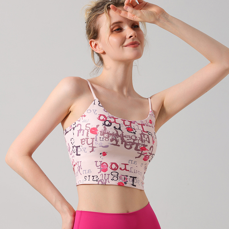 美式复古画报印花吊带背心夏辣妹修身运动瑜伽普拉提显瘦打底套装