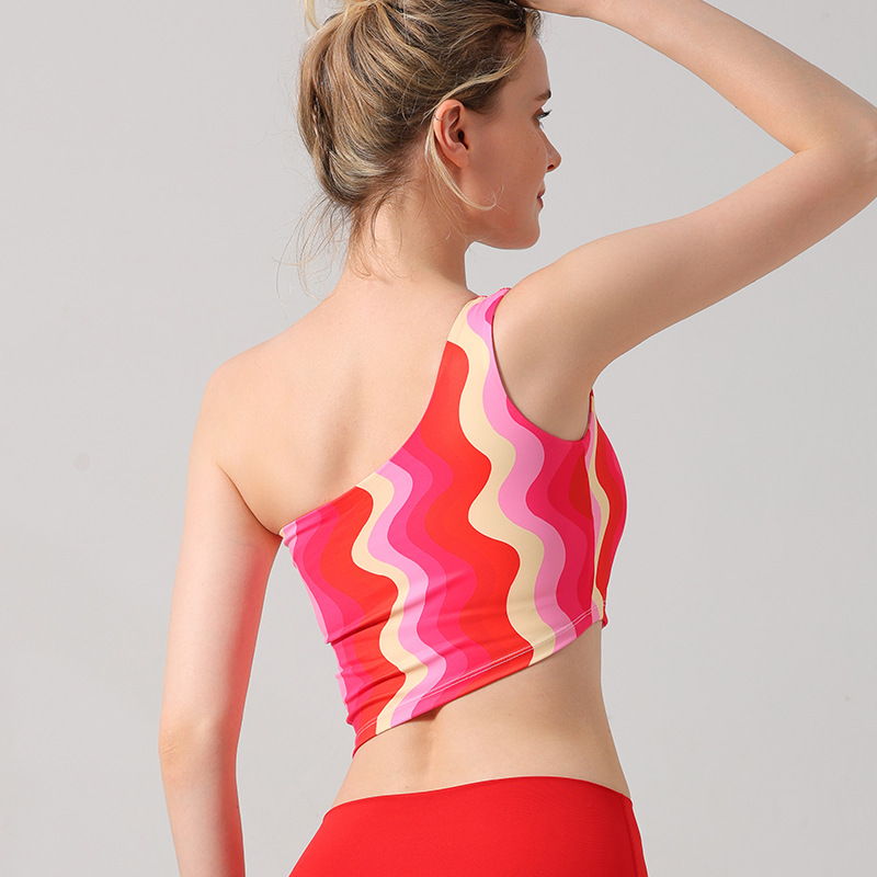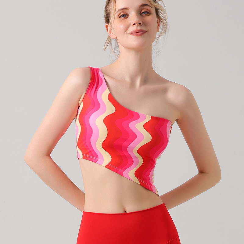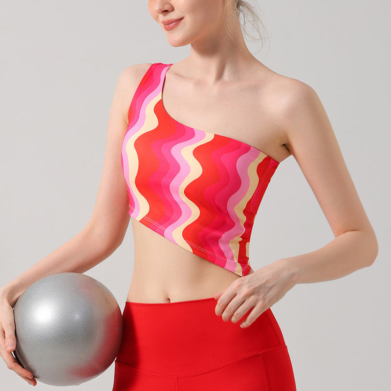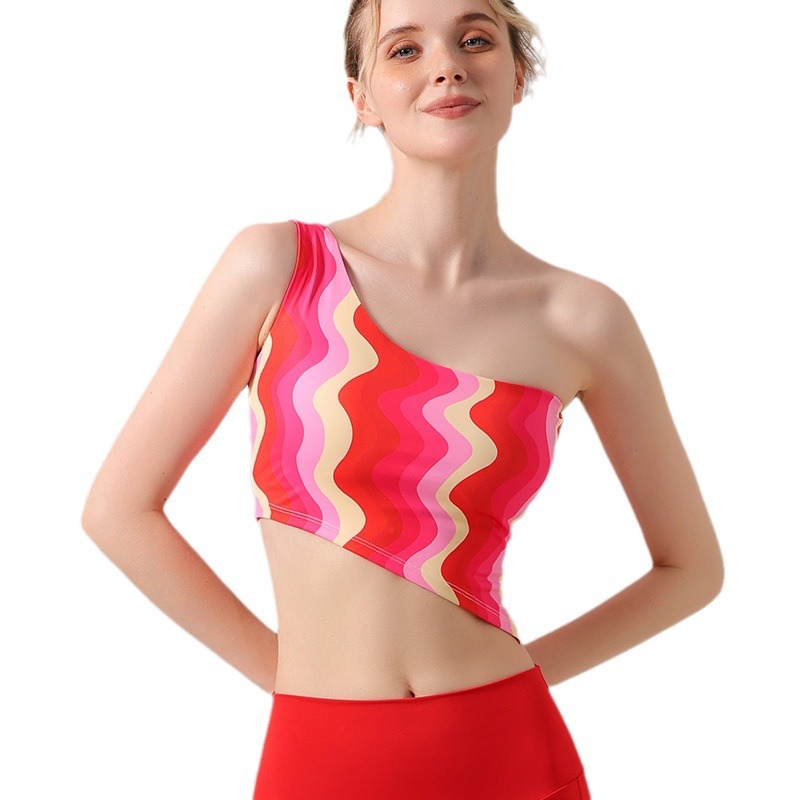 跨境欧美斜肩性感时尚印花瑜伽服背心女带胸垫运动健身内衣