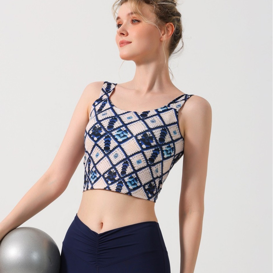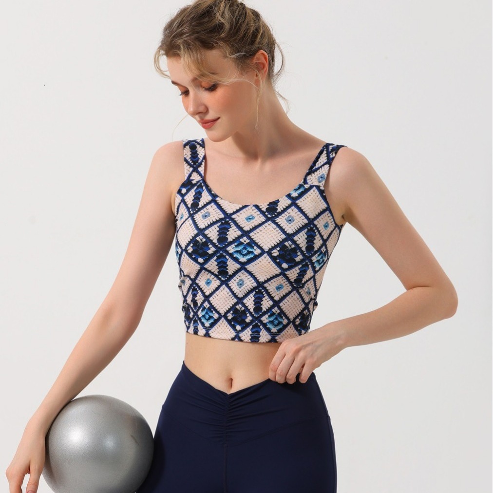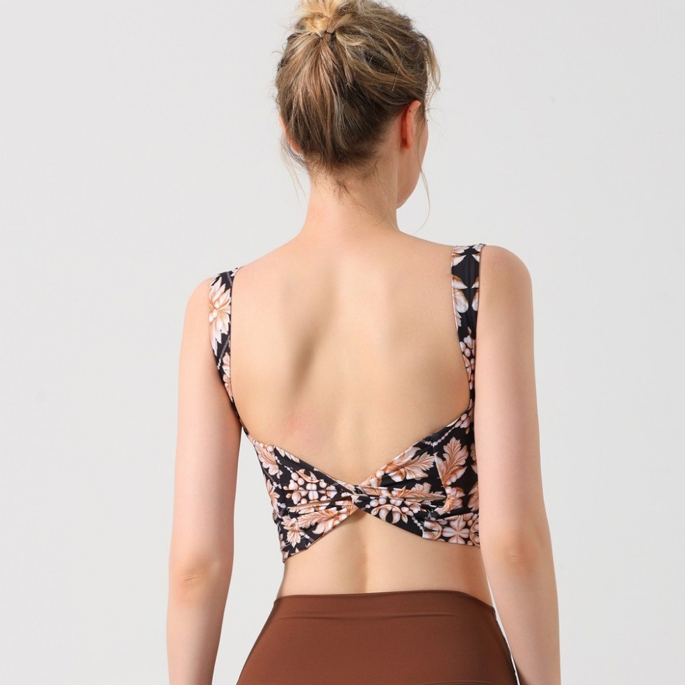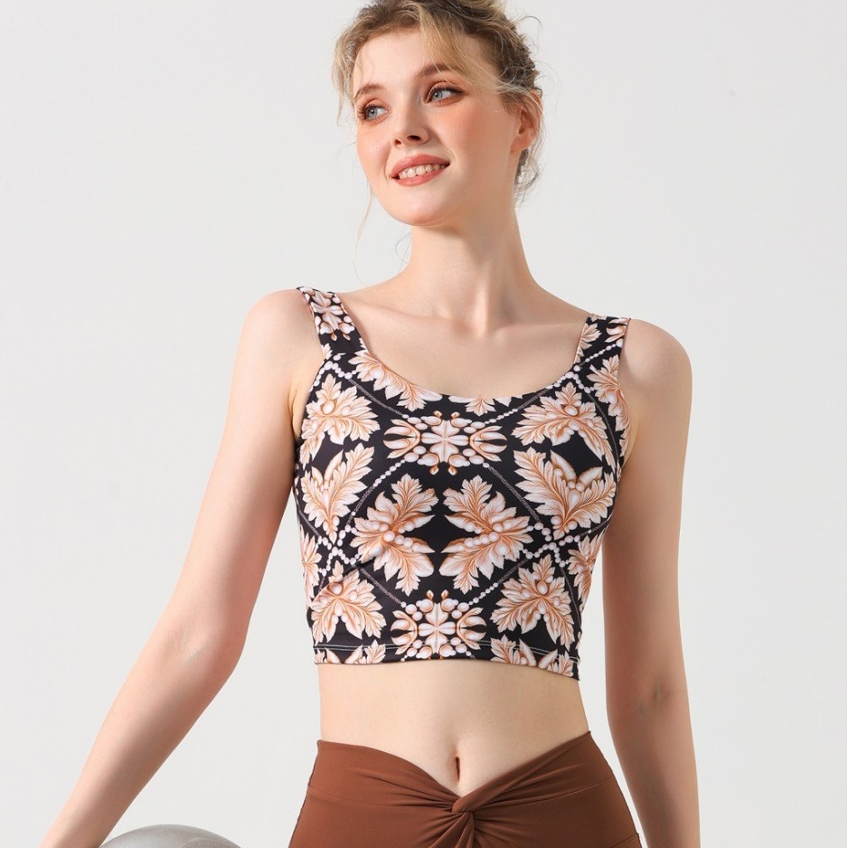 跨境外贸欧美印花美背心瑜伽服女带胸垫运动文胸健身内衣高强度