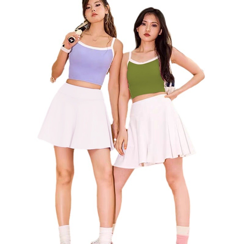 欧美外贸撞色美背心吊带胸垫外穿运动文胸紧健身内衣瑜伽服套装女
