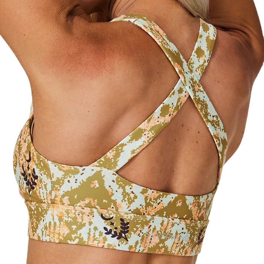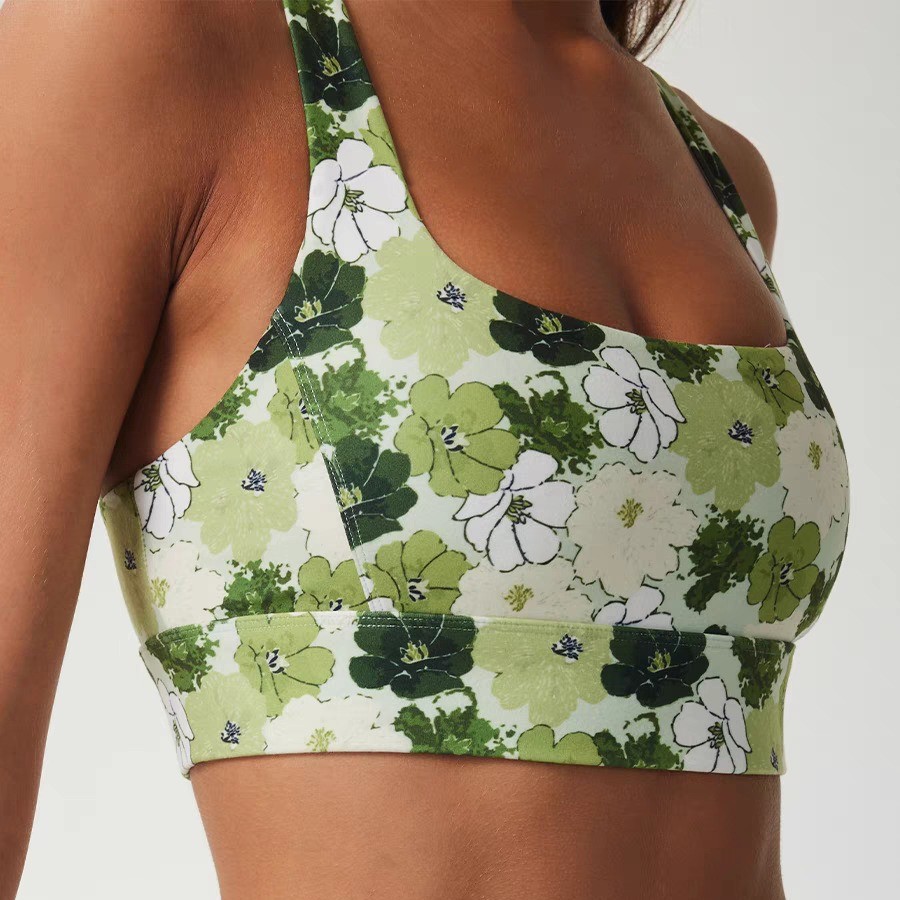 跨境欧美外贸数码印花时尚斜单肩瑜伽服女带胸垫运动文胸健身内衣