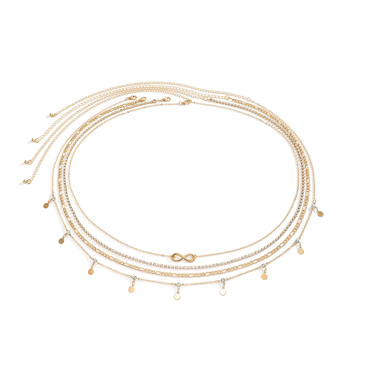 欧美跨境金属水钻链条waist chain肚脐腰链性感流苏叠戴小众腰饰