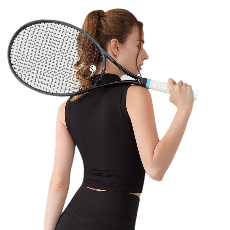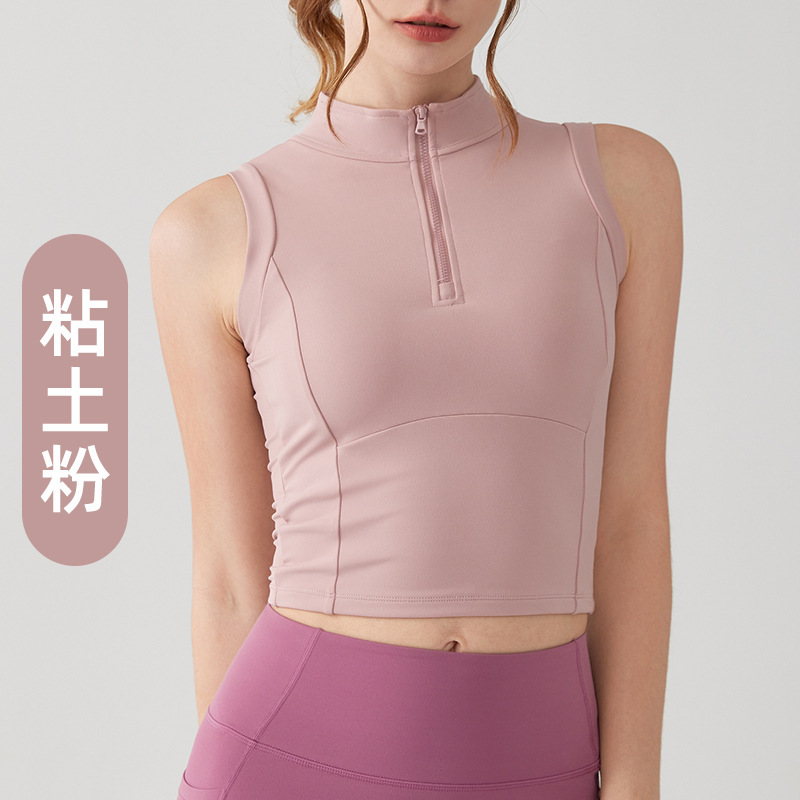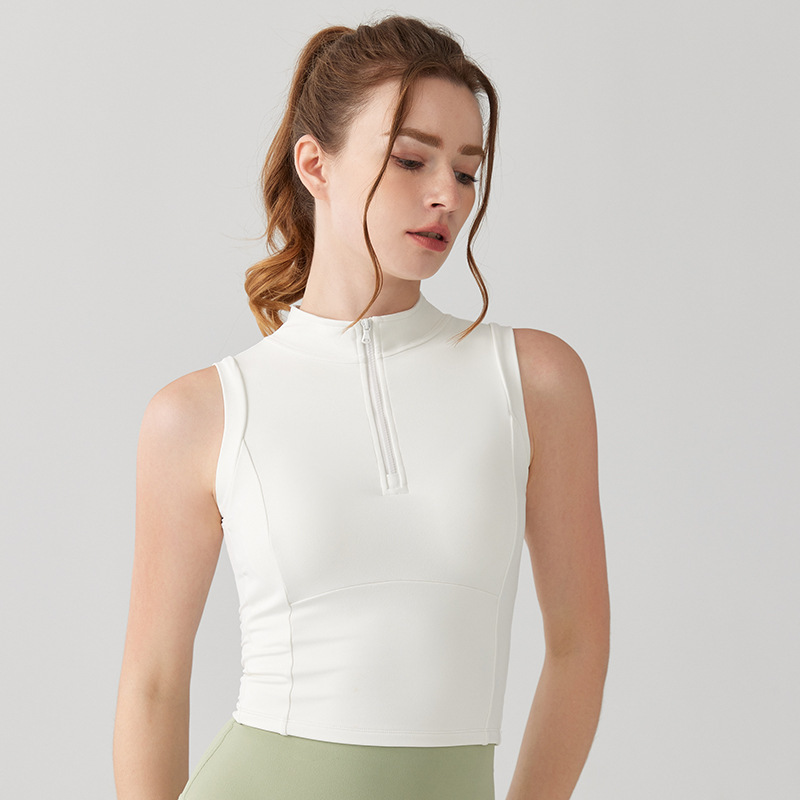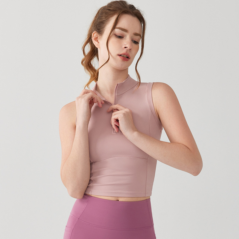 春夏新款网球瑜伽背心女半拉链一体式固定杯外穿跑步运动健身服女