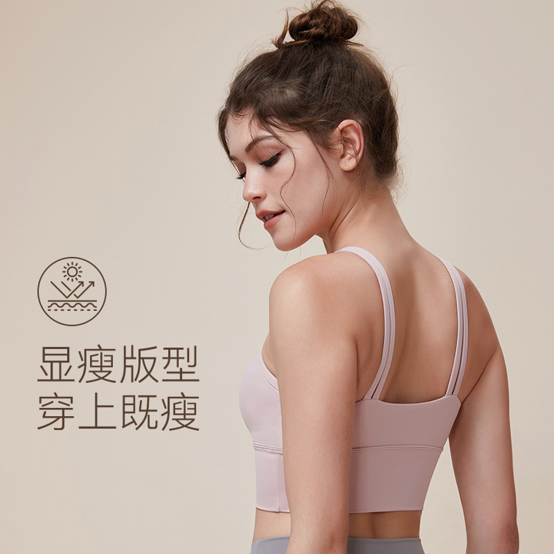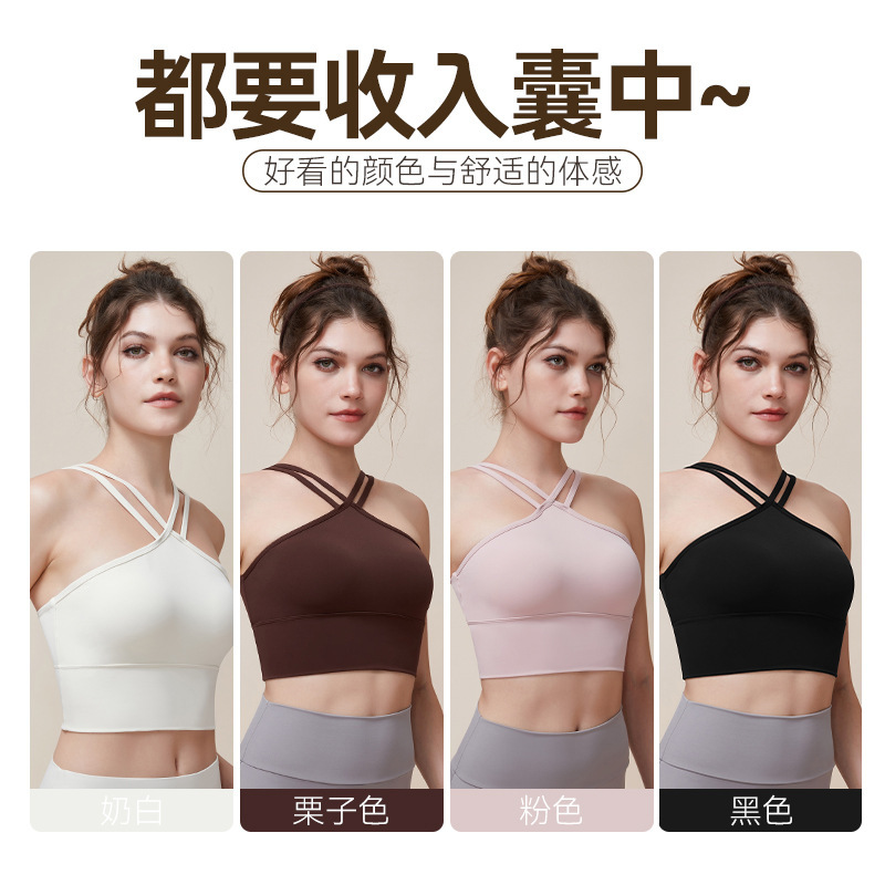 新款女芭蕾风双V瑜伽吊带瑜伽健身运动内衣 固定杯防震包副乳内衣