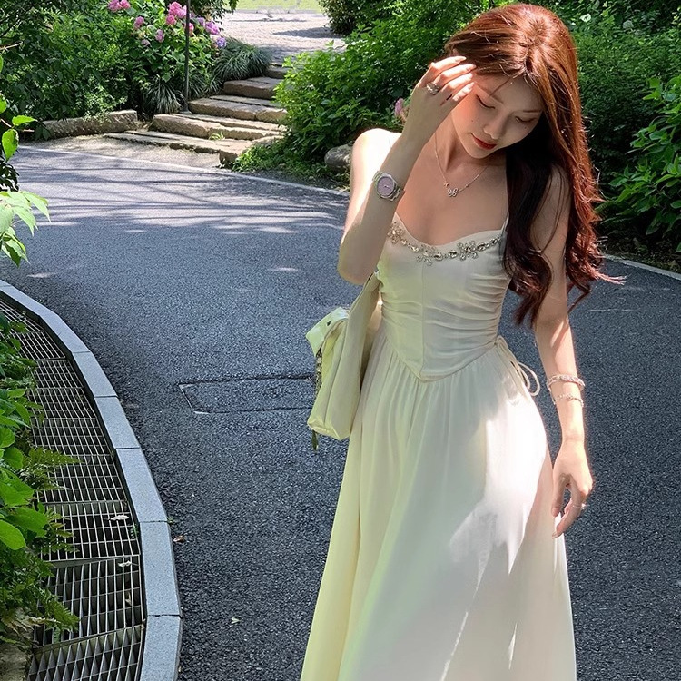 夏季连衣裙法式纯欲白色吊带裙子仙女气质高级性感度假收腰长裙子