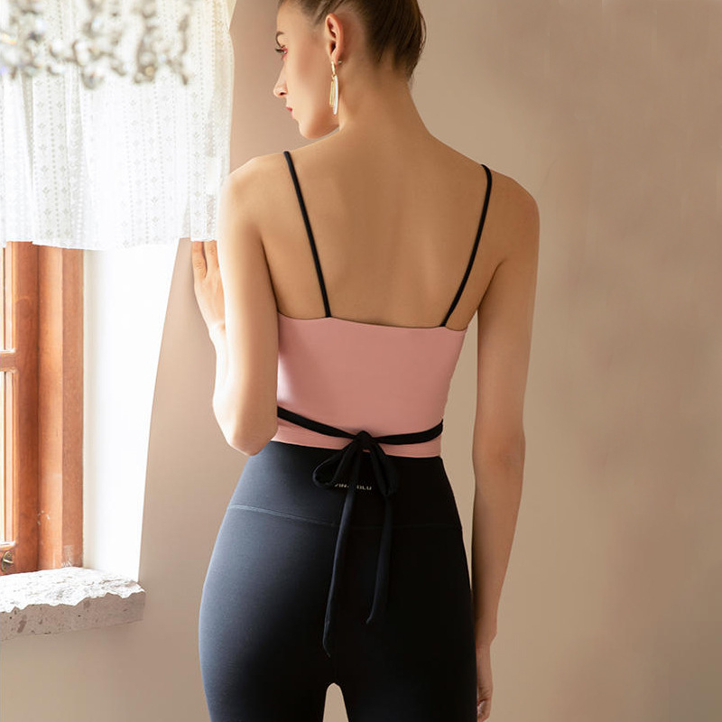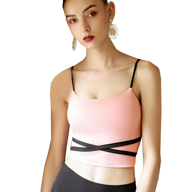 新款瑜伽背心女 拼色速干含胸垫锦纶高弹运动健身吊带上衣舞蹈服