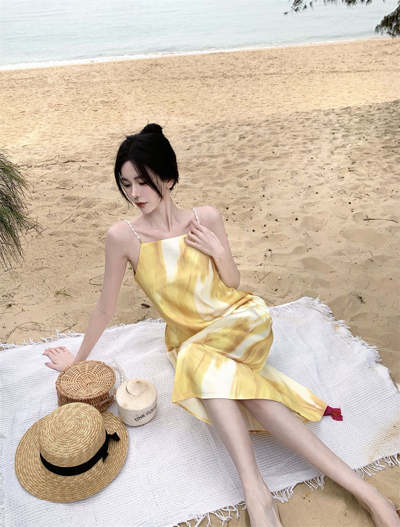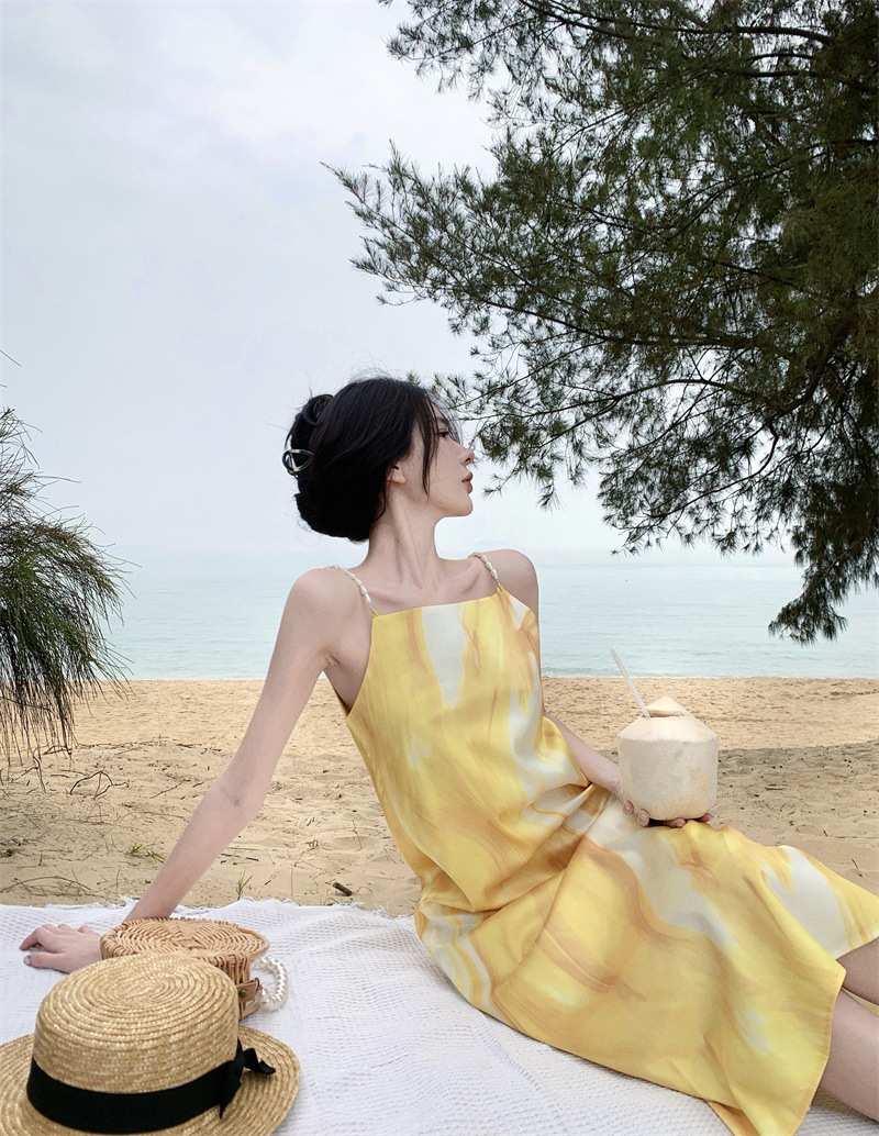 夏季新款女装法式别致可盐可甜设计感小众吊带连衣裙子长裙