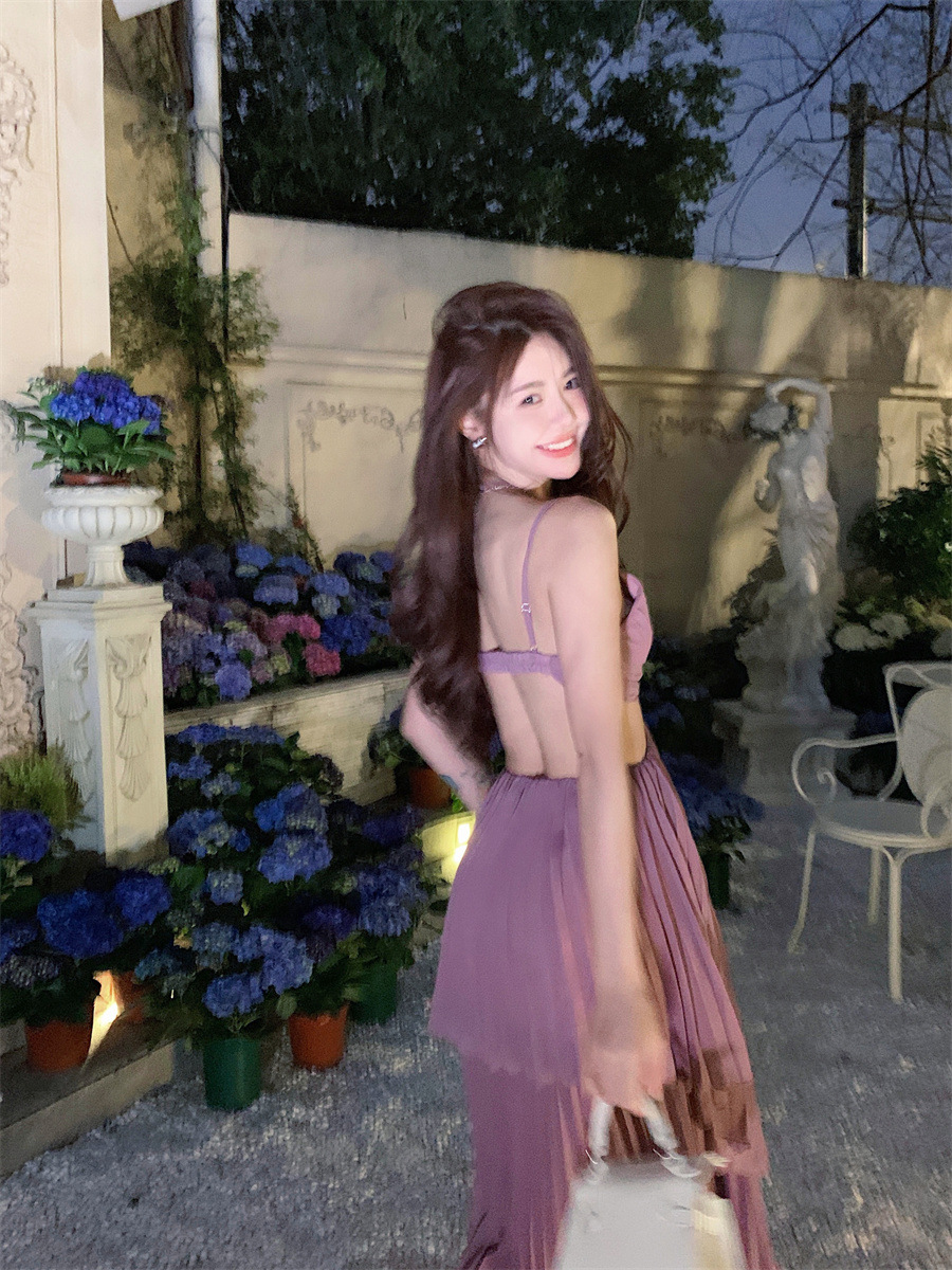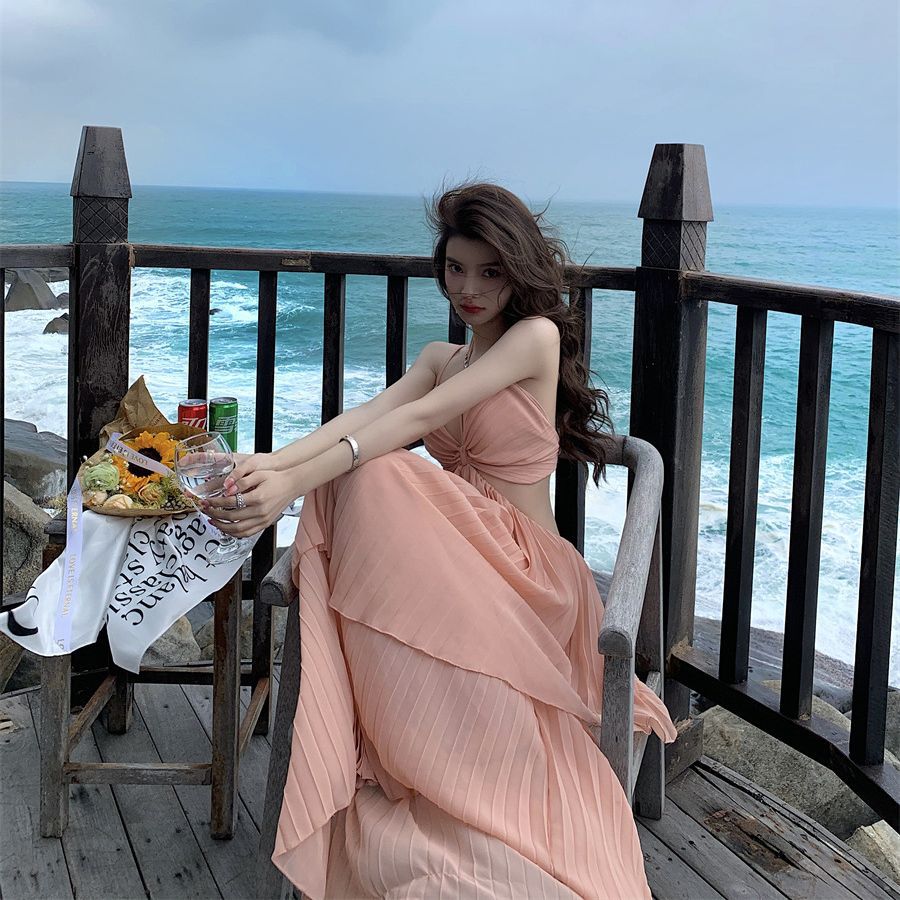 性感法式连衣裙露背纯欲风新款名媛气质海边度假连衣裙女