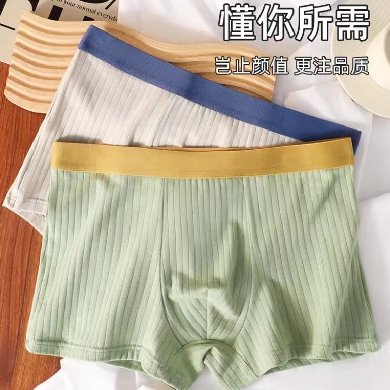 精美条纹男士甄选棉内裤透气四角裤高弹平角裤男生