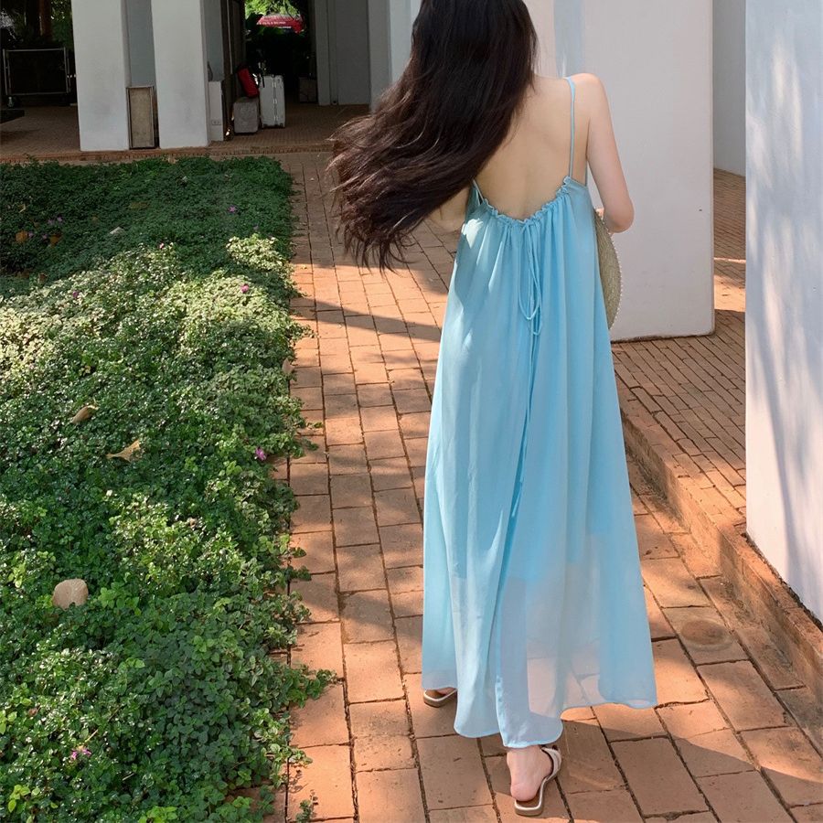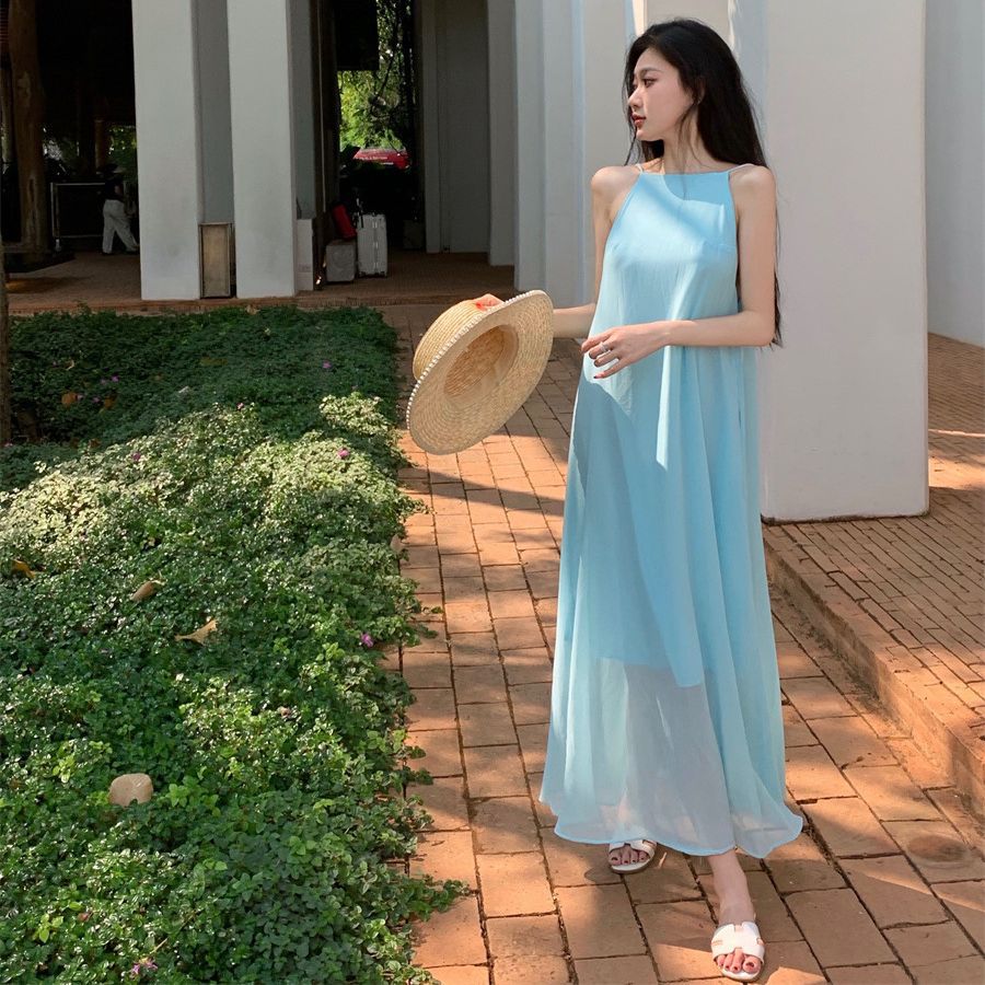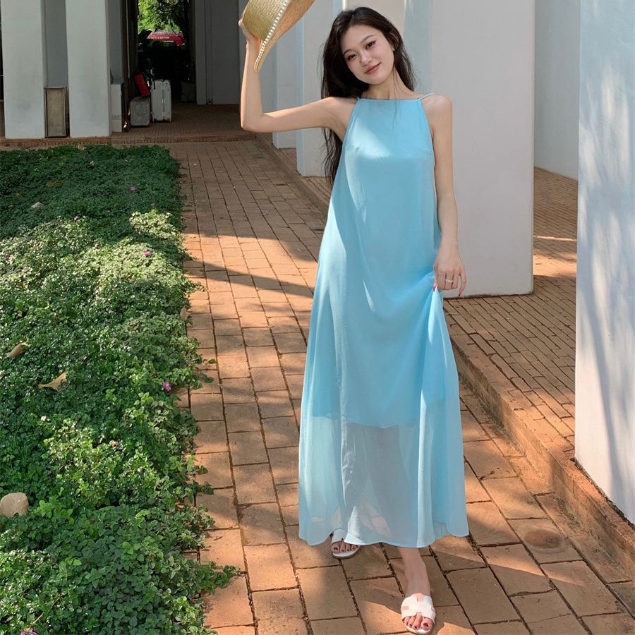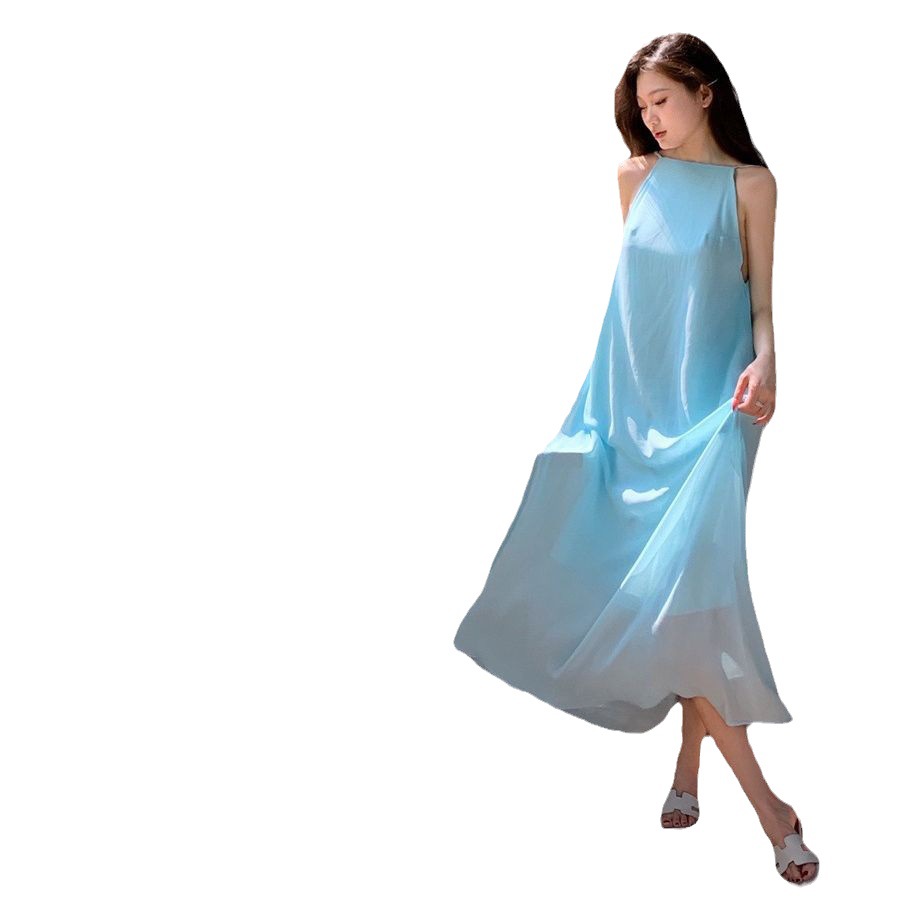 挂脖连衣裙露背女夏季新款高级感宽松吊带无袖飘逸沙滩长裙女