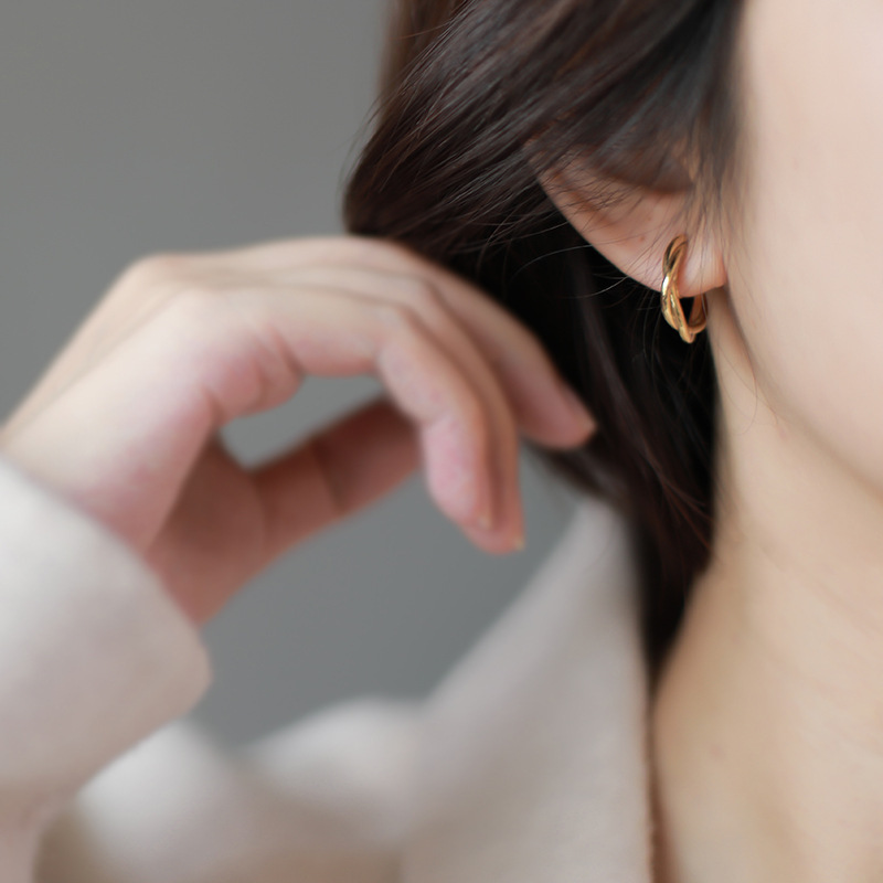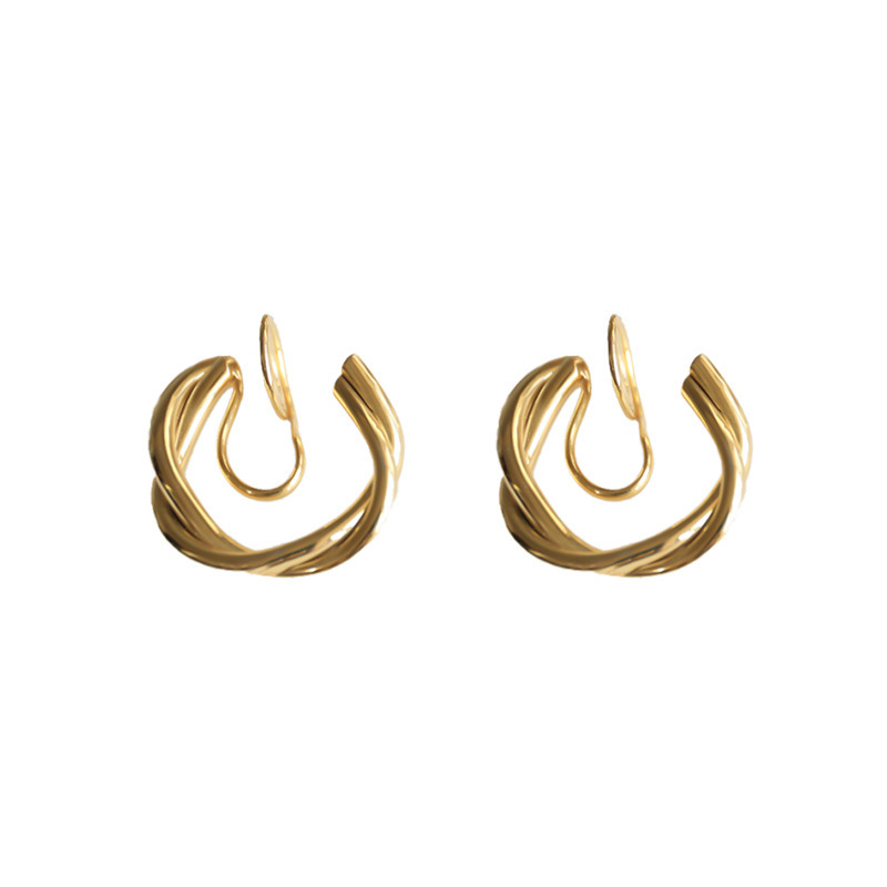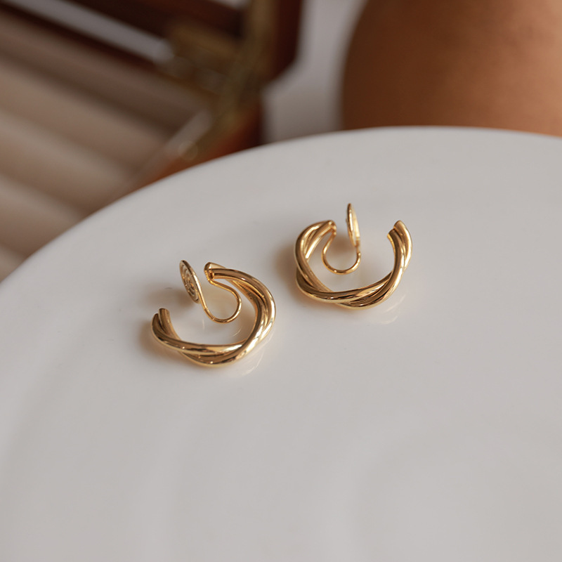 高级感耳圈蚊香盘耳夹女无耳洞麻花耳环圆圈金属法式复古耳饰